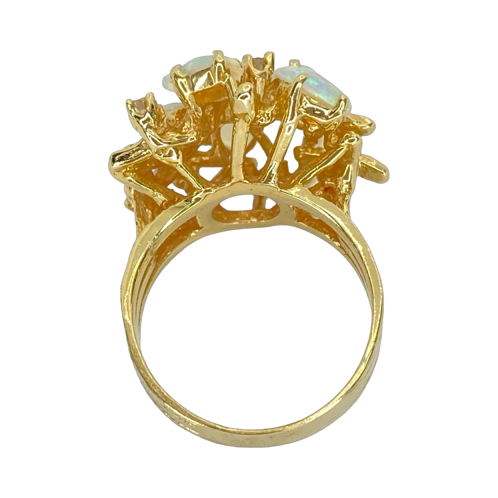 Estate Jewelry 14K Yellow Gold Opal and Diamond Cluster Ring