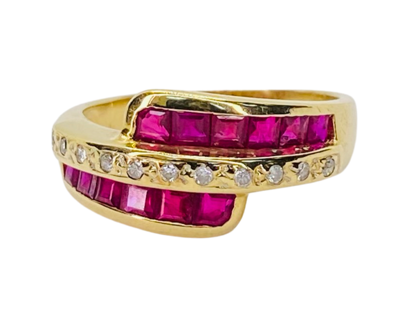 14K Yellow Gold Rubies & Diamond Ring