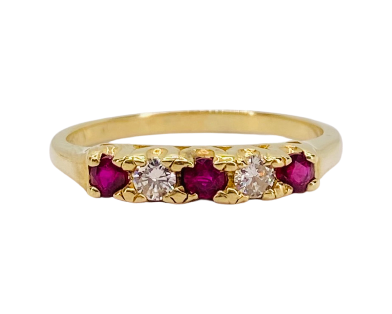 Estate Jewelry 14K Yellow Gold Rubies & Diamond Ring