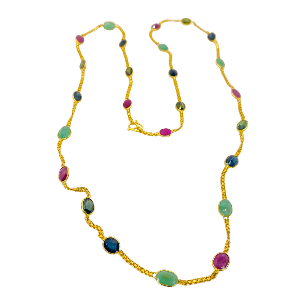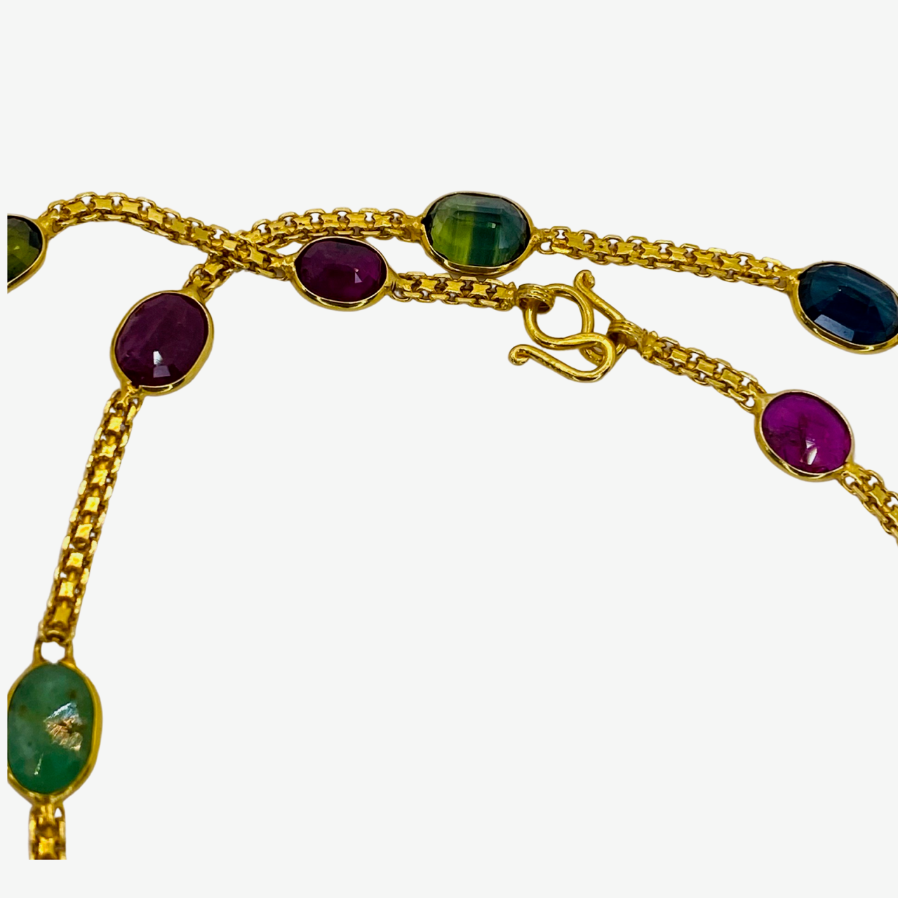 Estate Jewelry 18-22K Yellow Gold Multi Gemstone Necklace