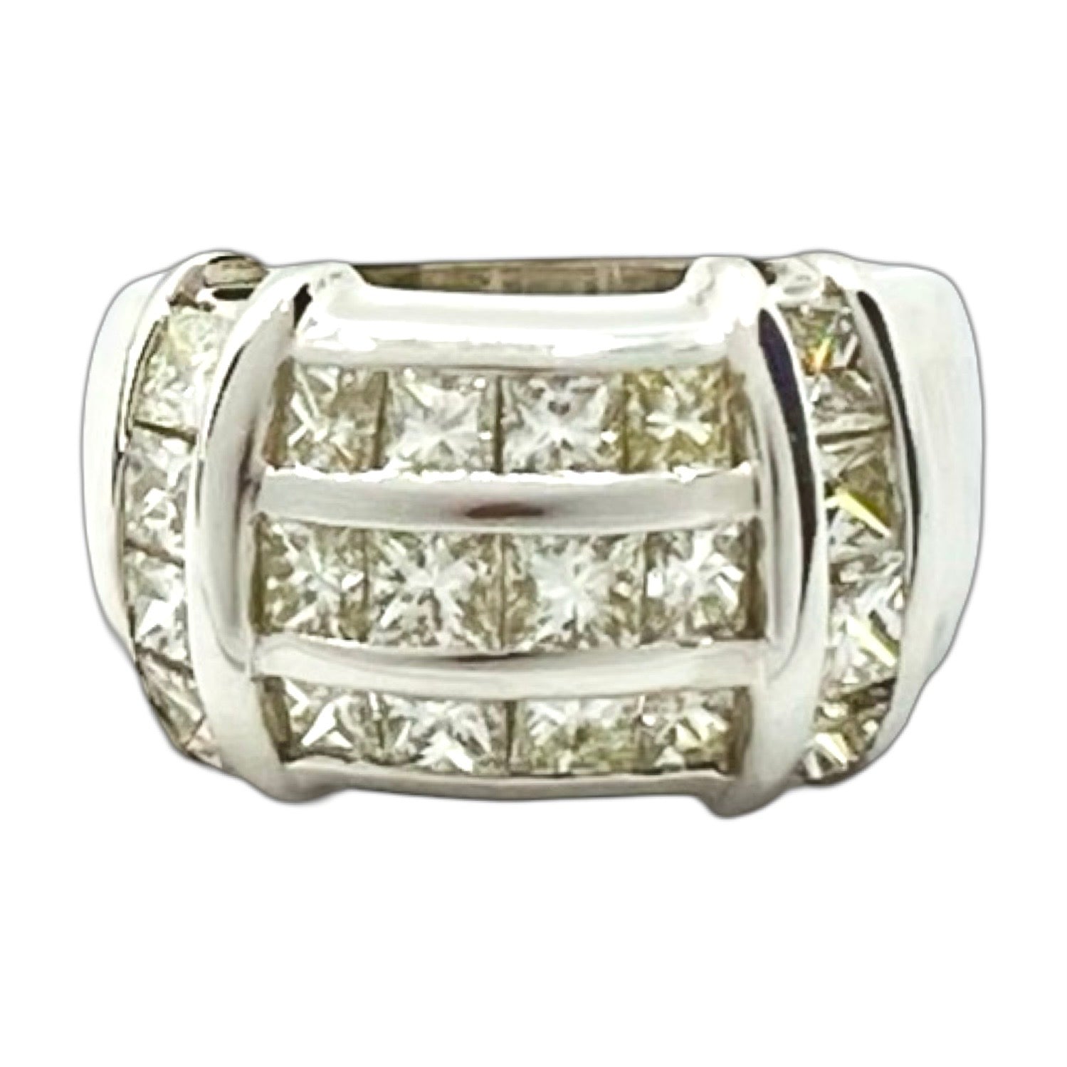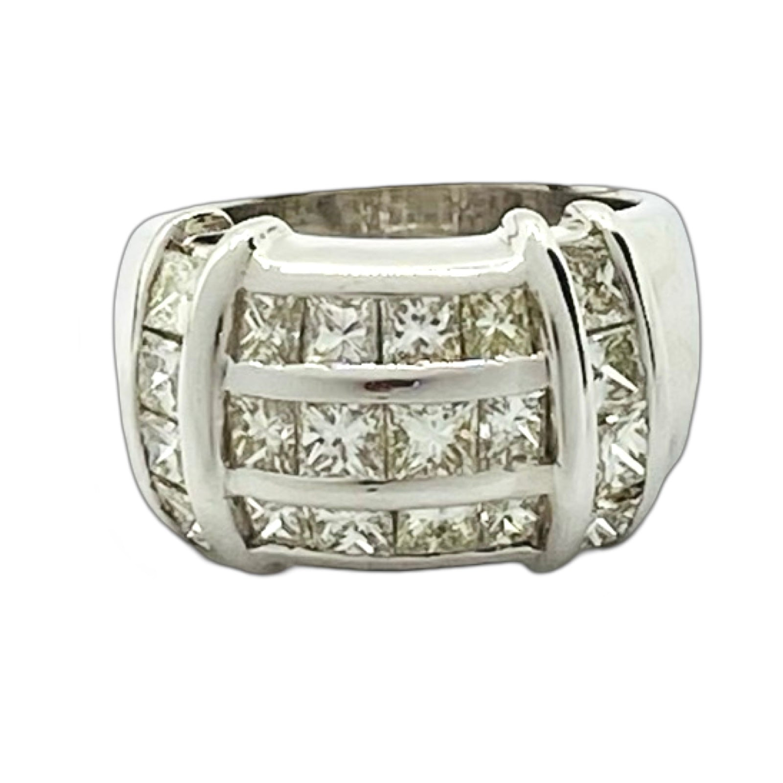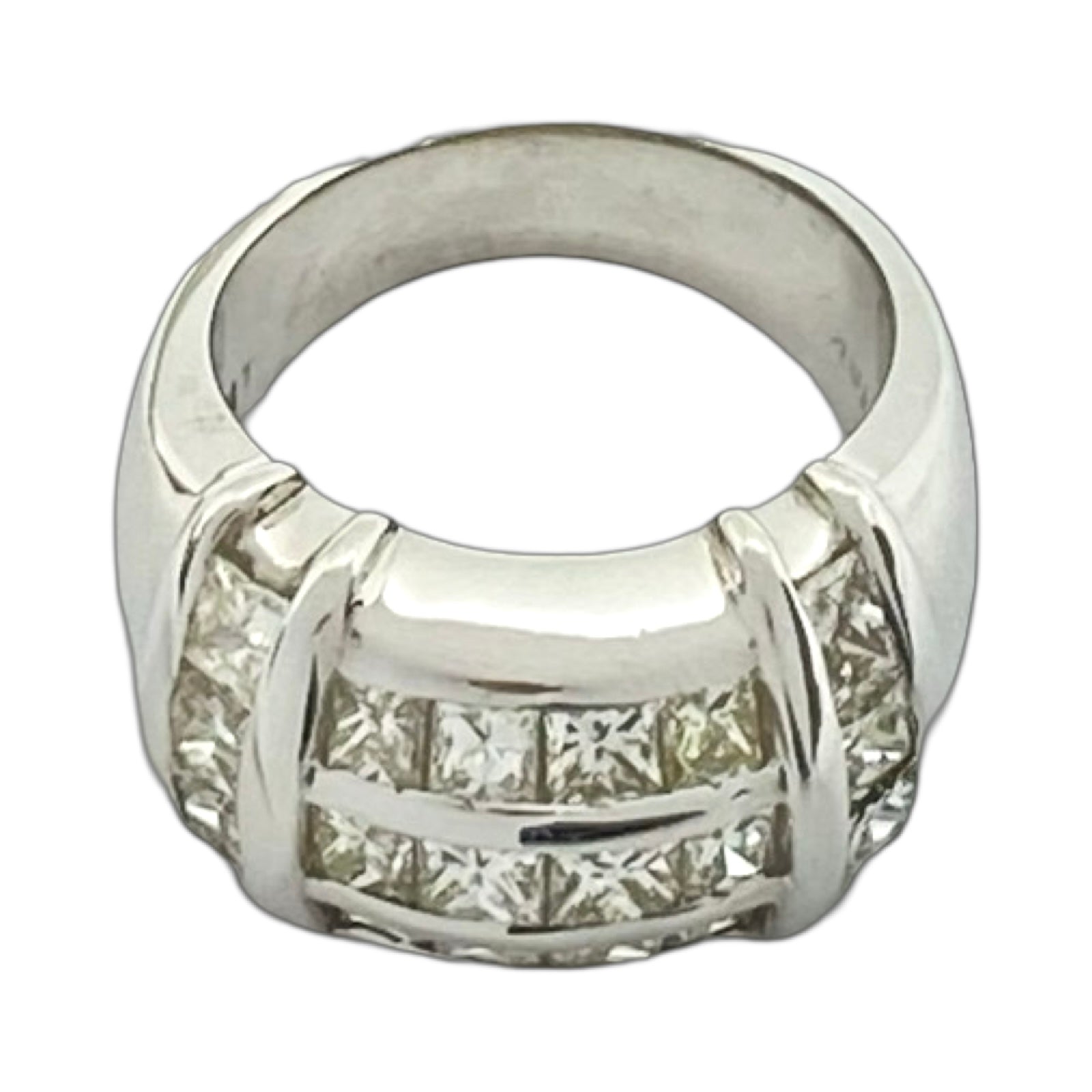 Estate Jewelry 18K White Gold Princess Cut Diamond Cocktail Ring 3.22 Carats