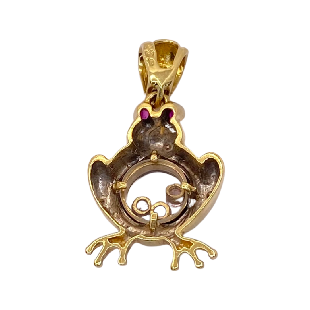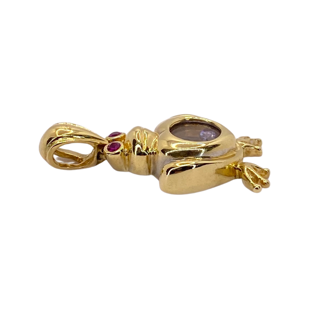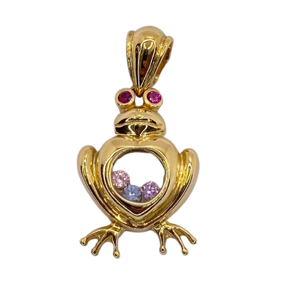 Estate Jewelry 18K Yellow Gold Multi Gemstone Frog Pendant