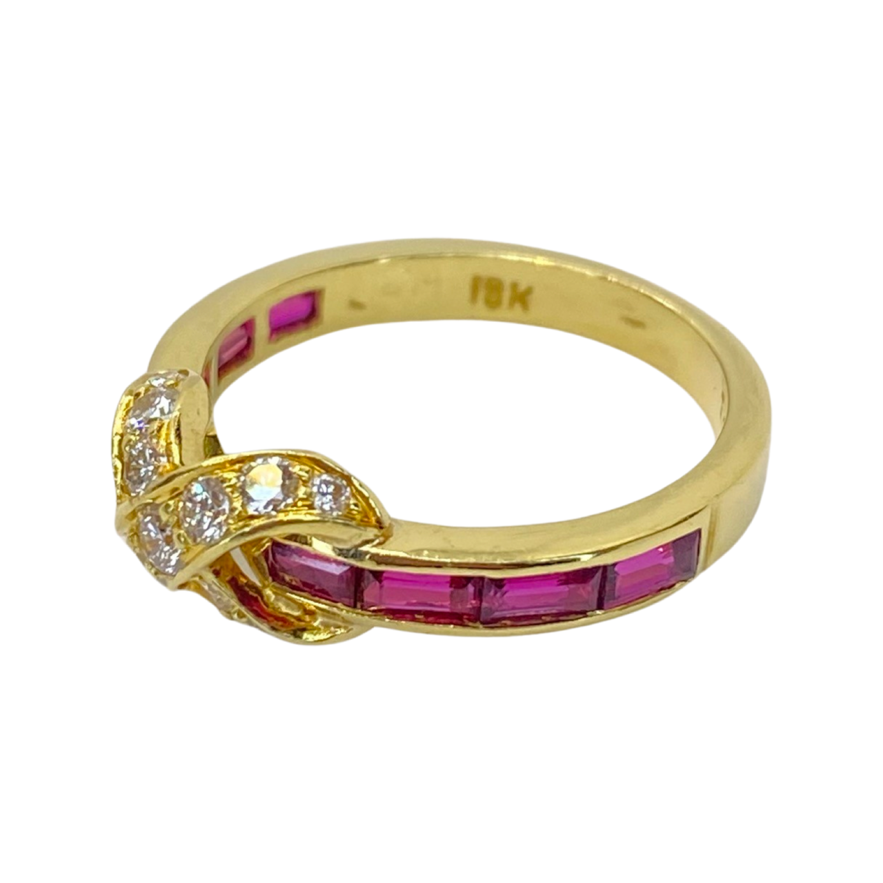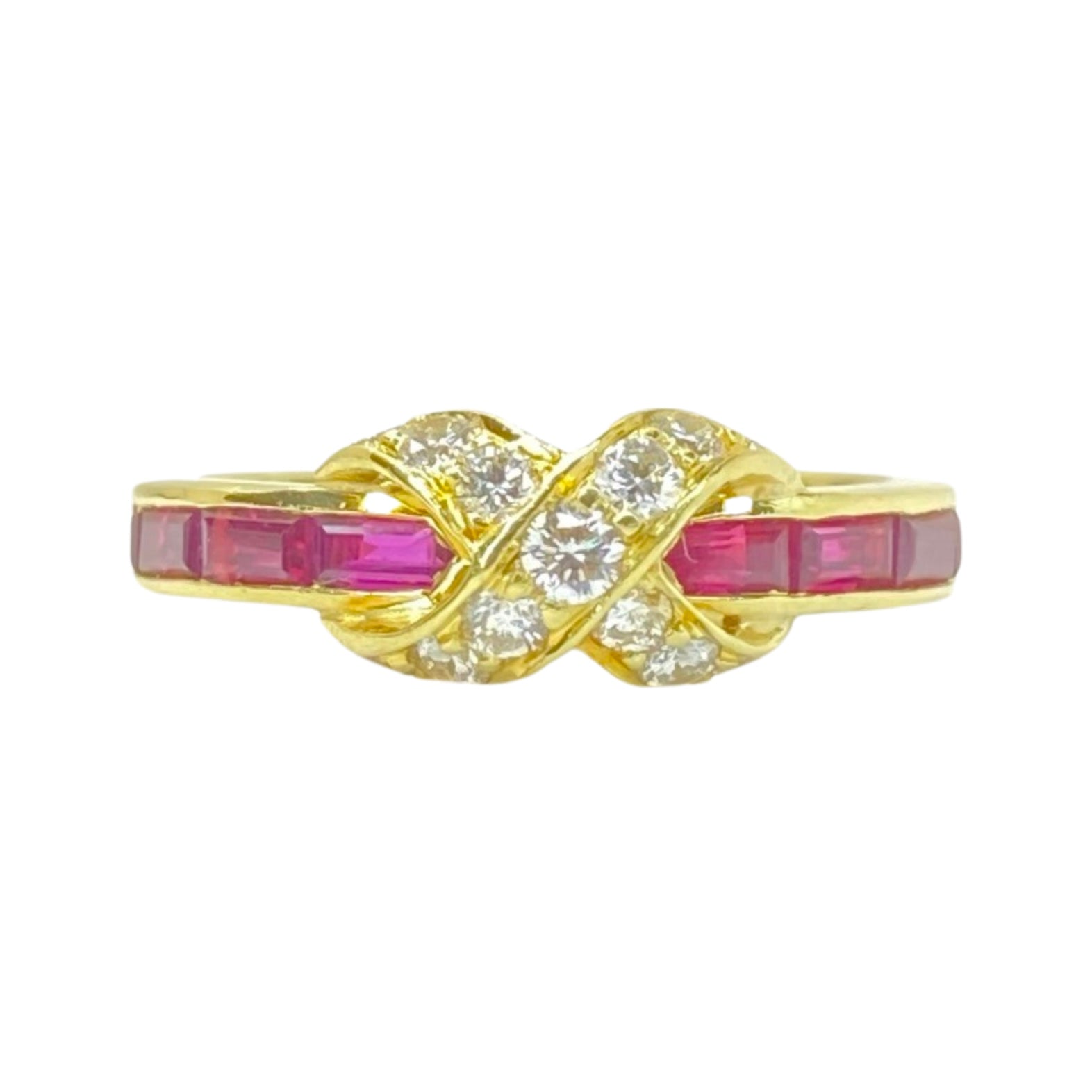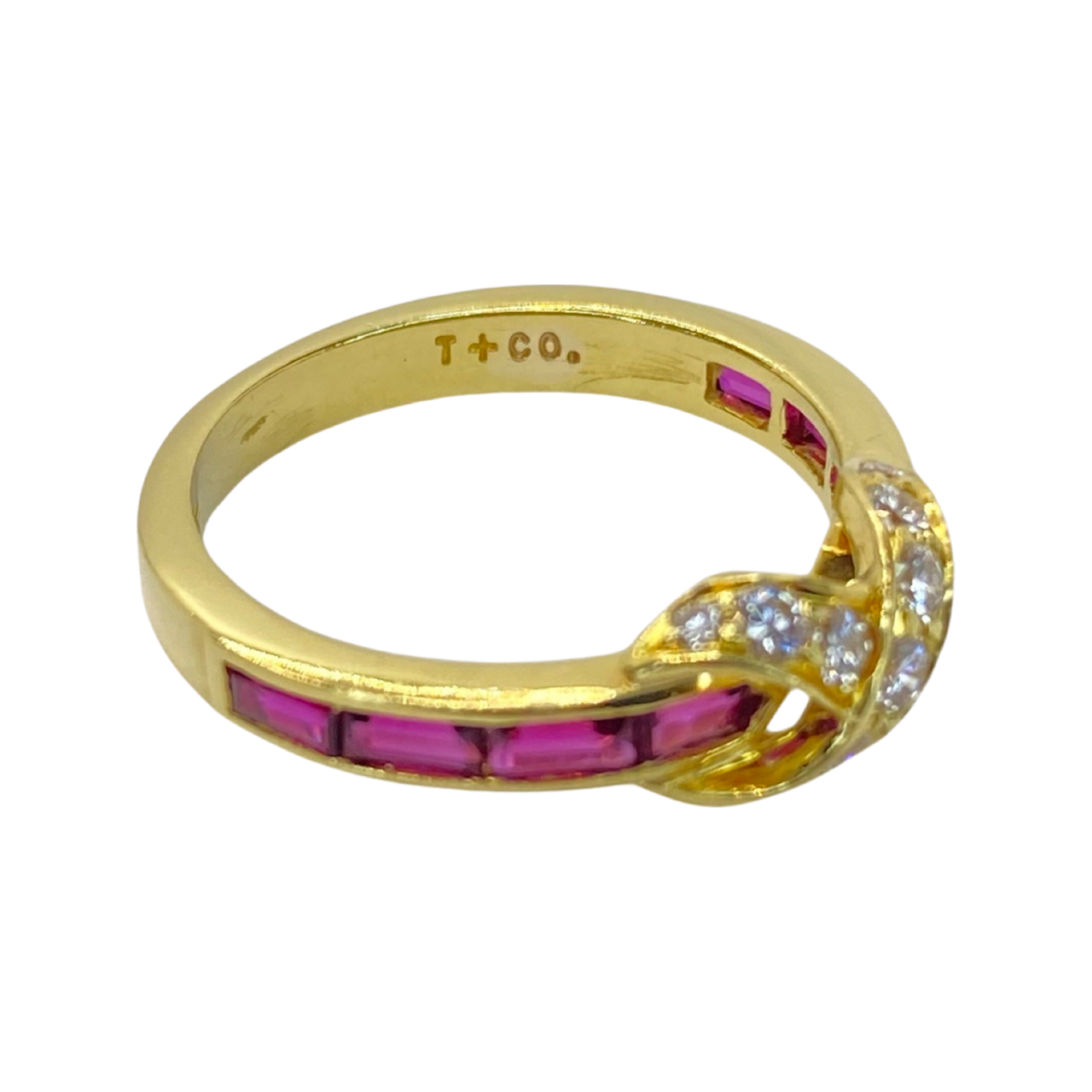 18K Yellow Gold Tiffany & Co "X" Diamond and Ruby Ring