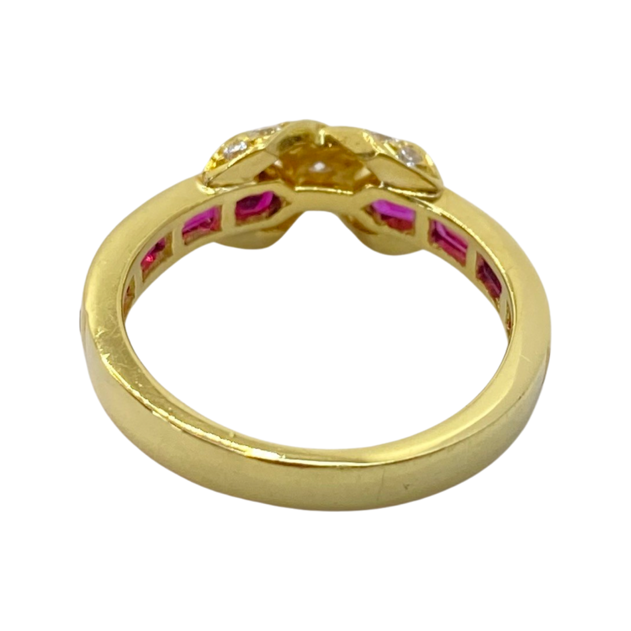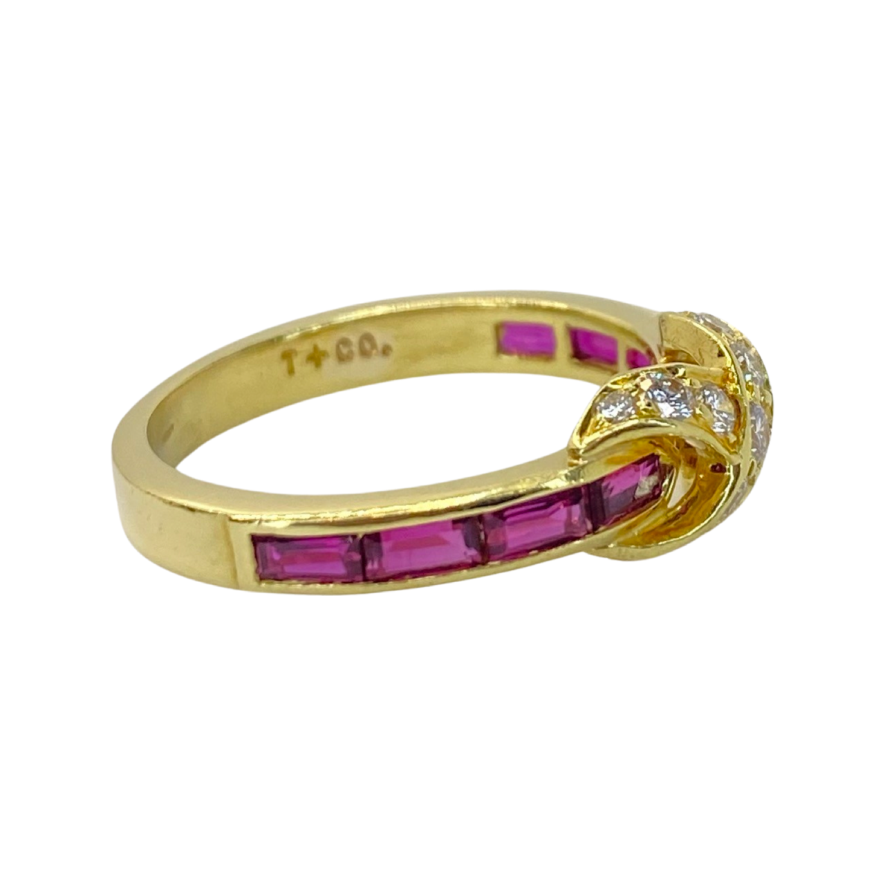 Estate Jewelry 18K Yellow Gold Tiffany & Co "X" Diamond and Ruby Ring