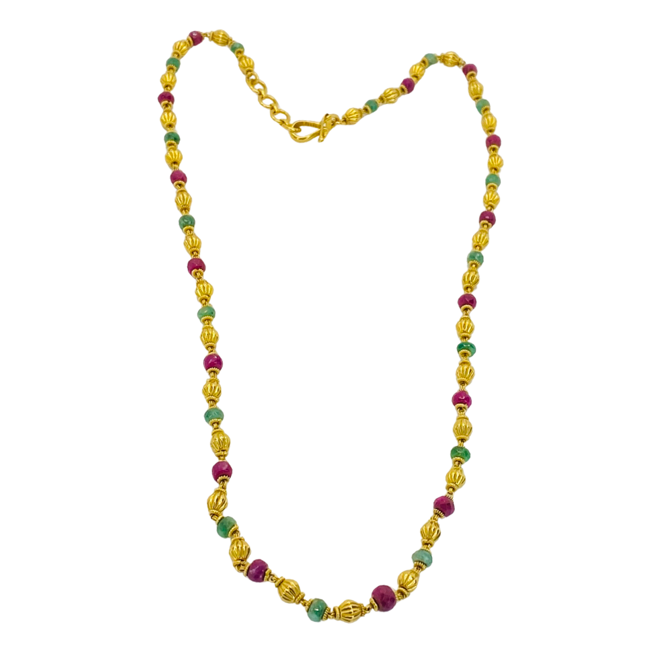Estate Jewelry 22K Yellow Gold Faceted Round Emerald and Ruby Necklace