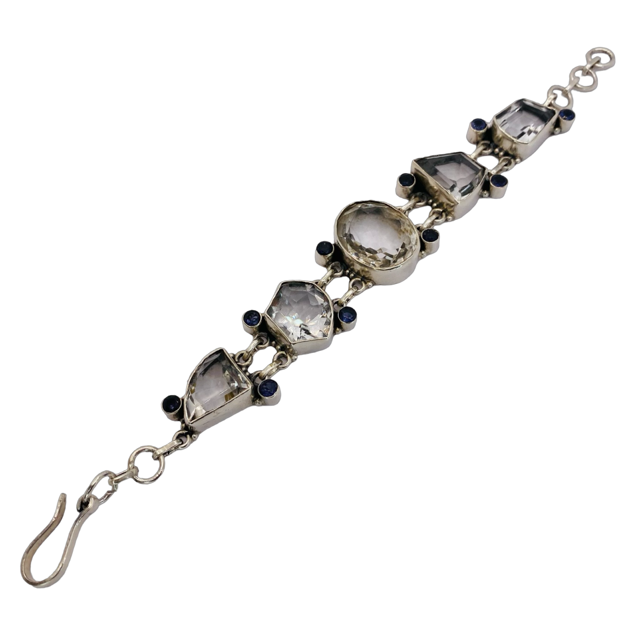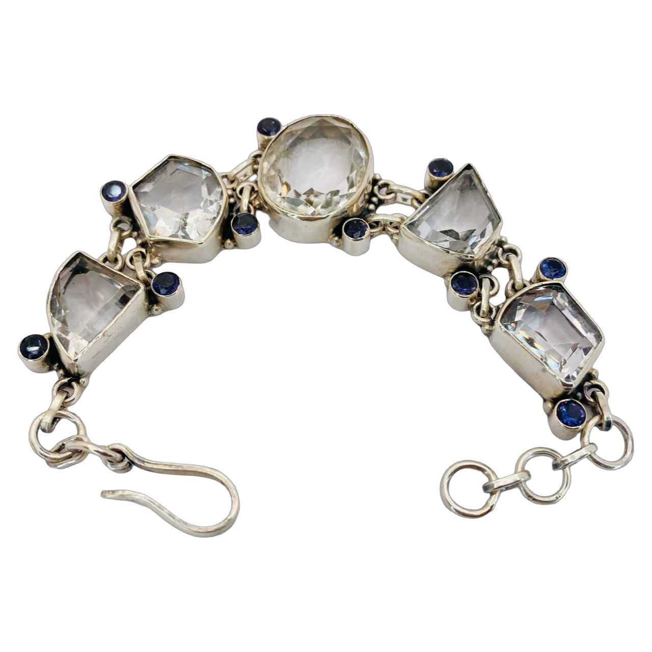 Estate Jewelry 925 Silver Clear and Blue Gemstone Bracelet