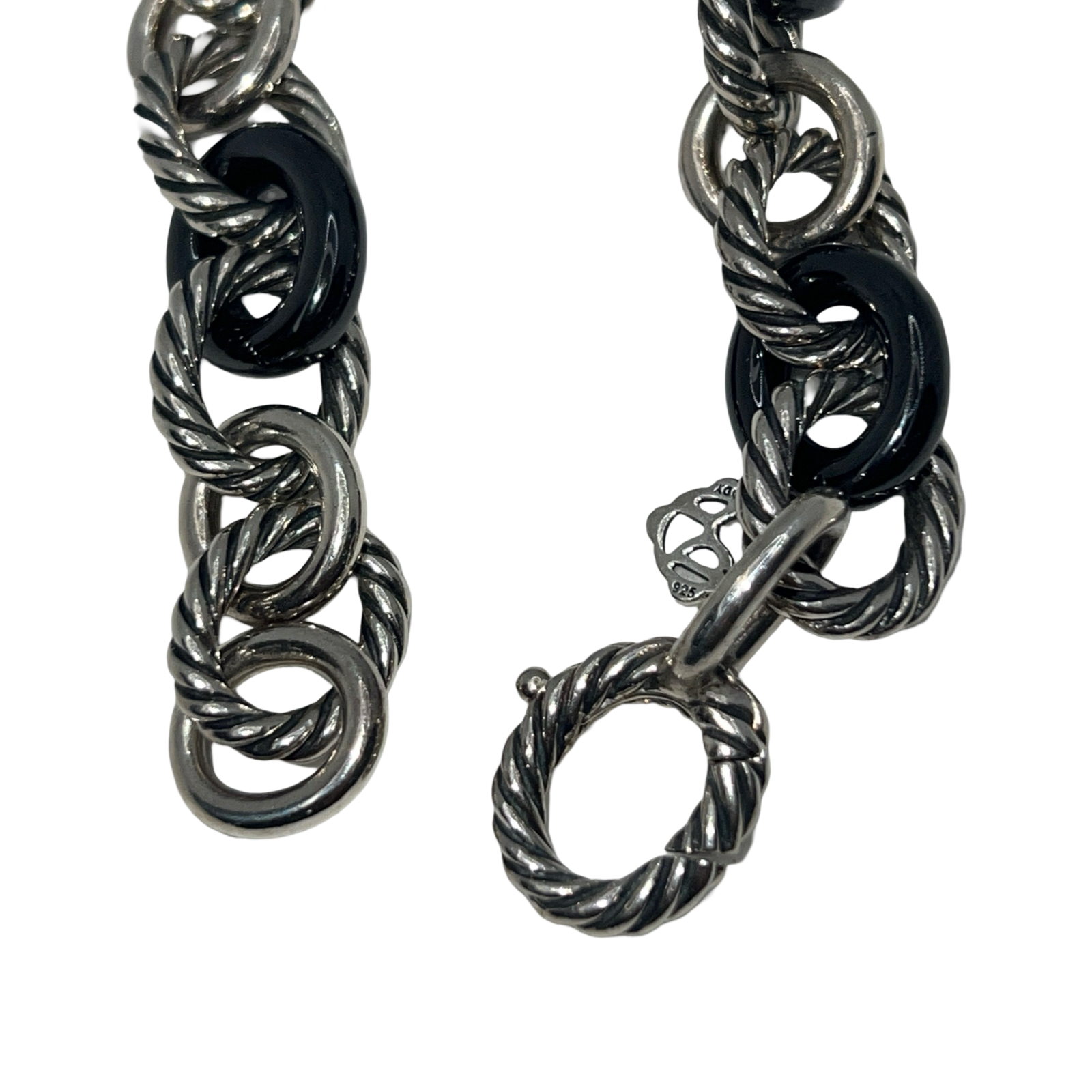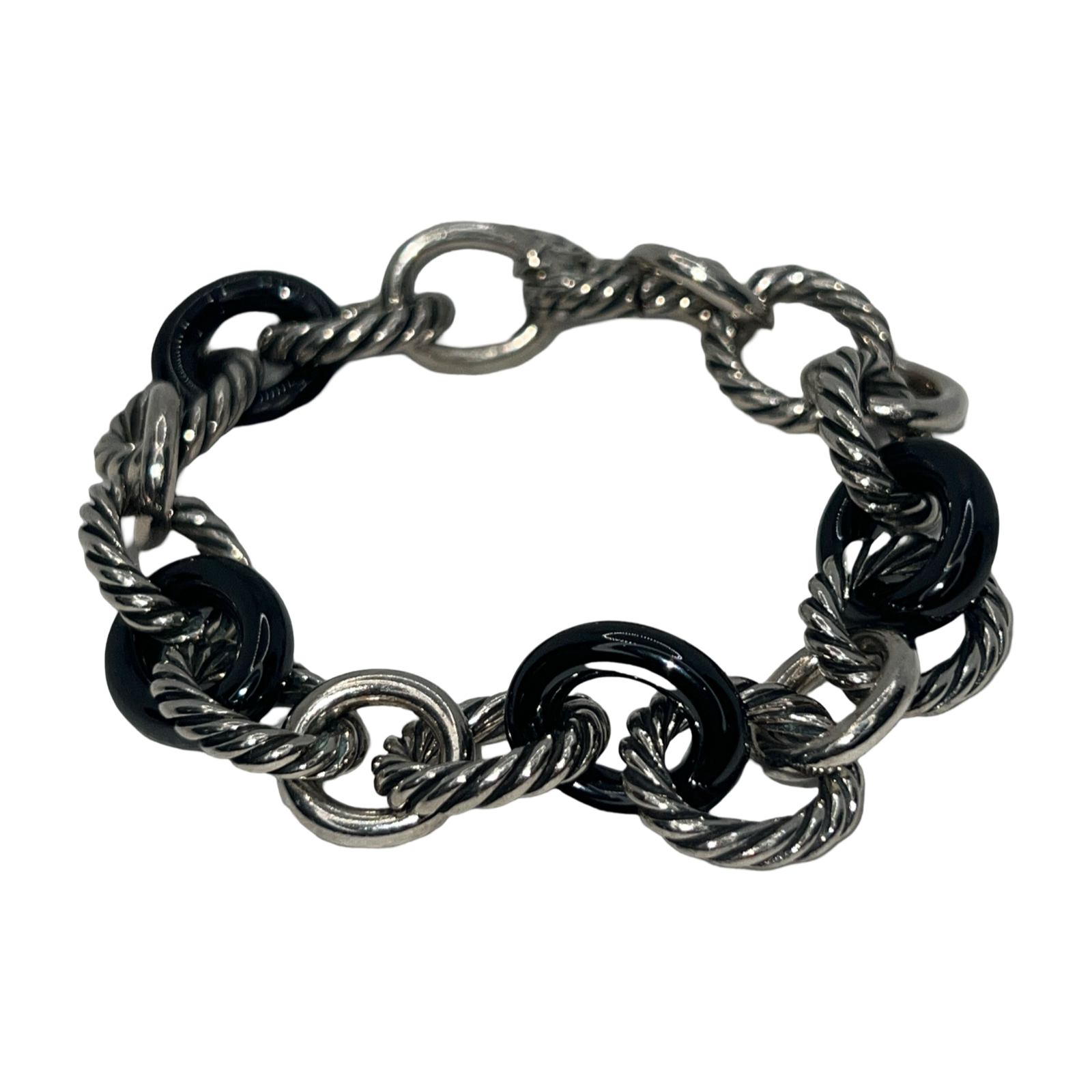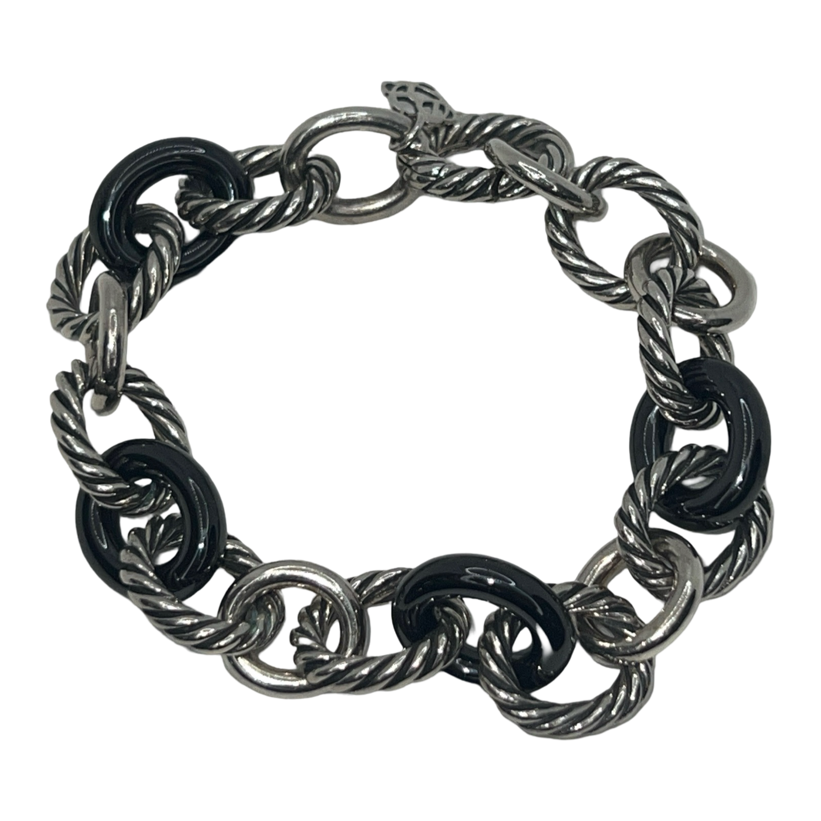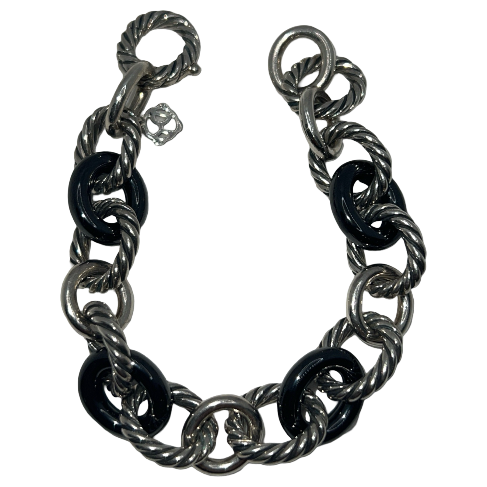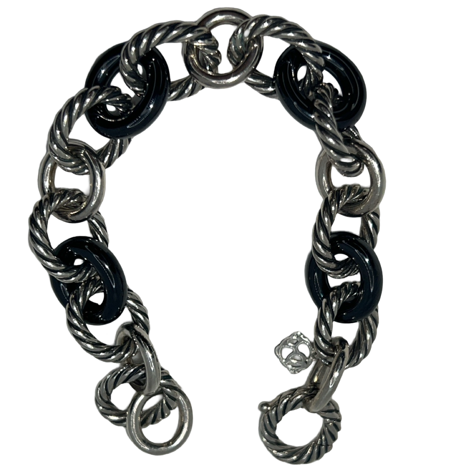 Estate Jewelry David Yurman 925 Silver and Black Ceramic Large Oval Link Bracelet