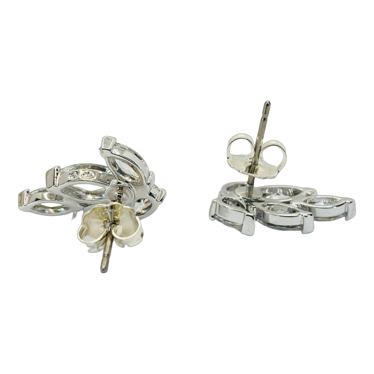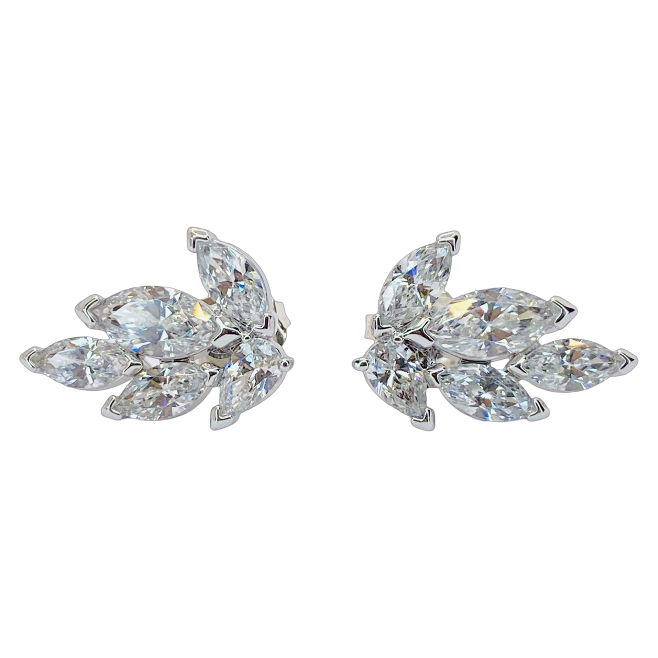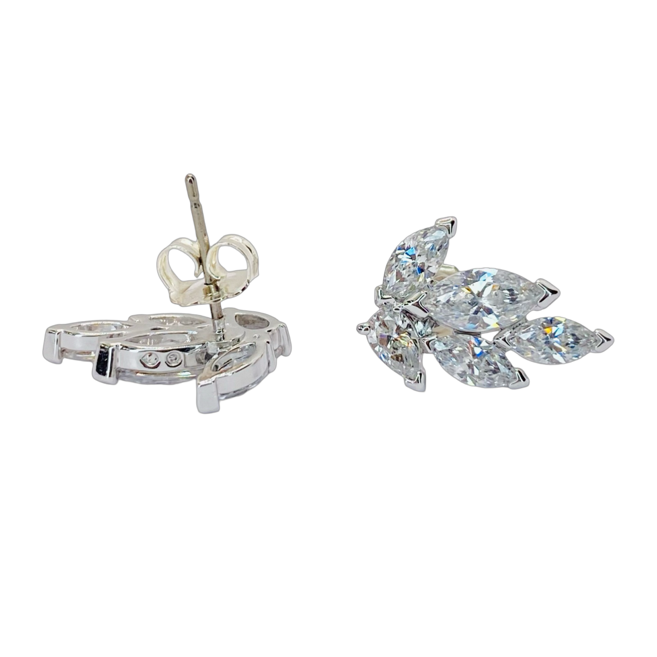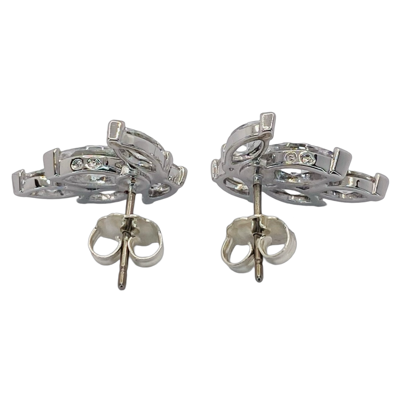 Estate Jewelry Silver Marquise Swarovski Stud Earring Clusters
