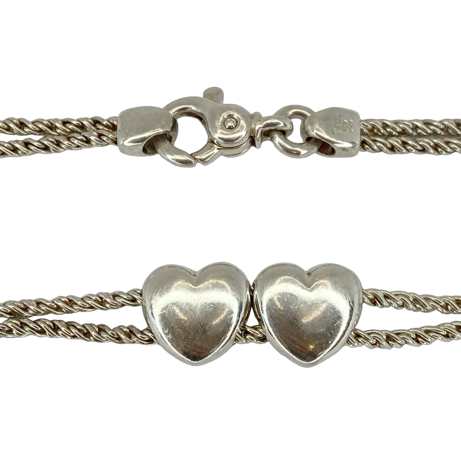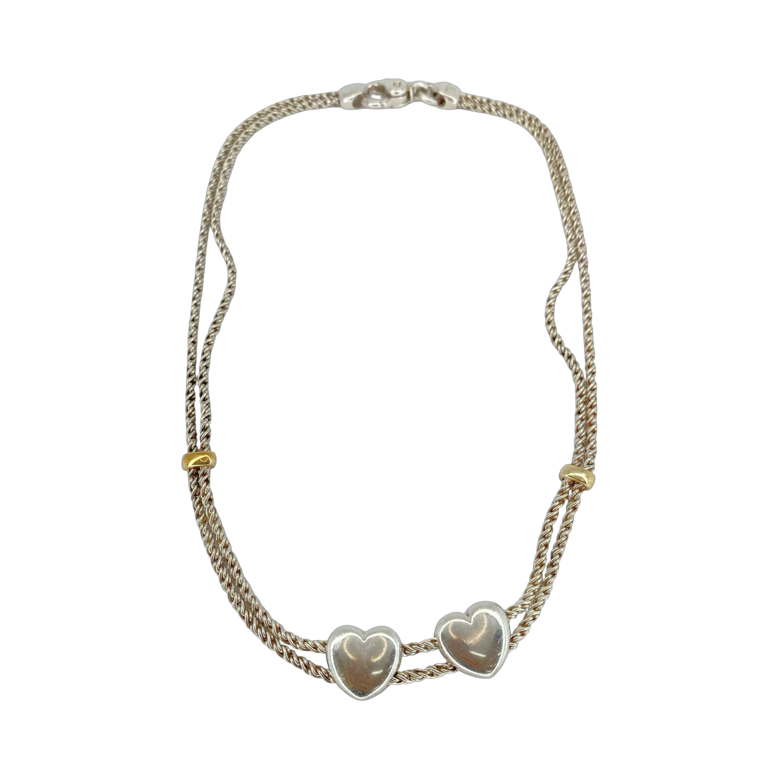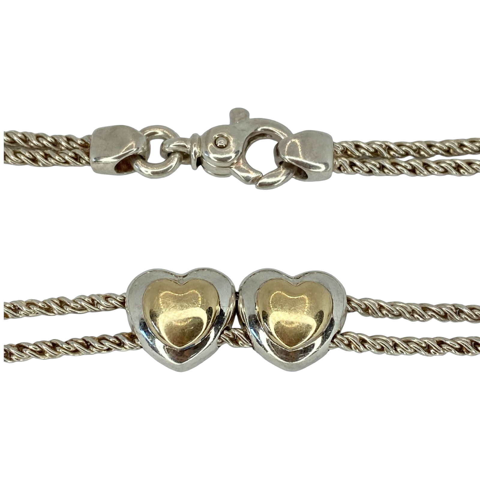 Estate Jewelry Tiffany & Co. Sterling Silver and 18K Yellow Gold Double Slide Hearts Necklace