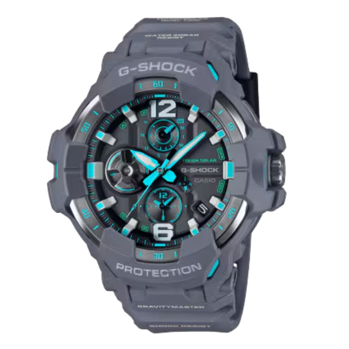 Just as the Head-up Display (HUD) is an icon of innovation in aviation history, the G-SHOCK GRAVITYMASTER series of pilot watches is an icon of innovation in timepieces designed for performance in flight with an aviation aesthetic. Casio has a passion for aviation, and the G-SHOCK GRAVITYMASTER GRB300-8A2 pilot watch is that passion made manifest. With a gray/blue design modeled after a HUD, the innovative bezel and triple-layer dial combine to fashion a pilot watch that looks molded from a cockpit itself.