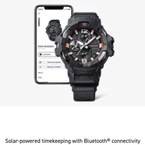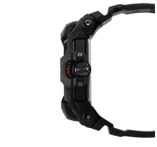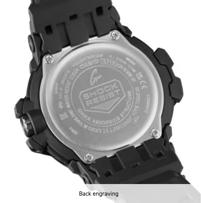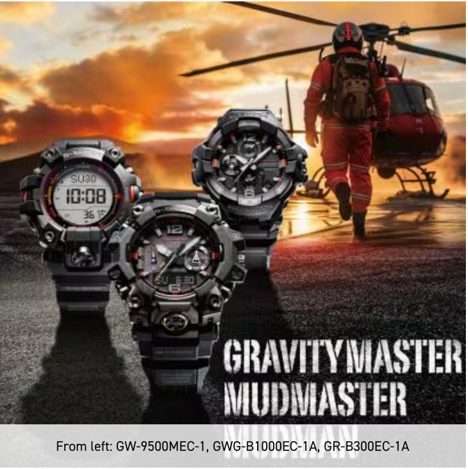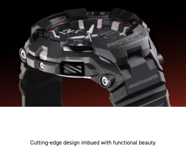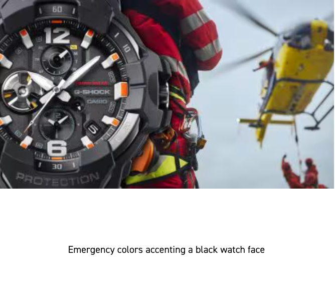Whatever you’re doing, wherever you are — the G-SHOCK Master of G line has your back. Based on GRAVITYMASTER, MUDMASTER, and MUDMAN models that deliver peak performance in punishing conditions in the air and on land, this line features a black watch case symbolizing toughness, with accents in vivid emergency colors that capture the world of professionals involved in rescue efforts and other critical missions. The organic form of the GRAVITYMASTER GRB300EC is inspired by next-generation aircraft and rendered with a seamless exterior design. The Carbon Core Guard structure and wide 3D face deliver durability, readability, and a comfortable fit. Enjoy all the practical functions as well, including dual-time simultaneously showing the time in two cities, a flight log memory function for recording routes traveled, and more.