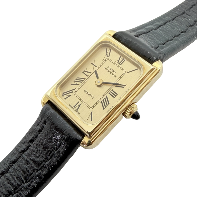Girard Perregaux Ladies 18K Gold Quartz Champagne Dial Black Strap