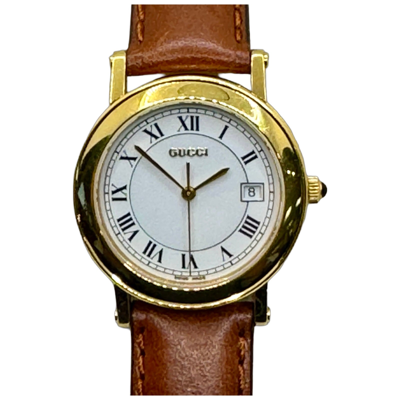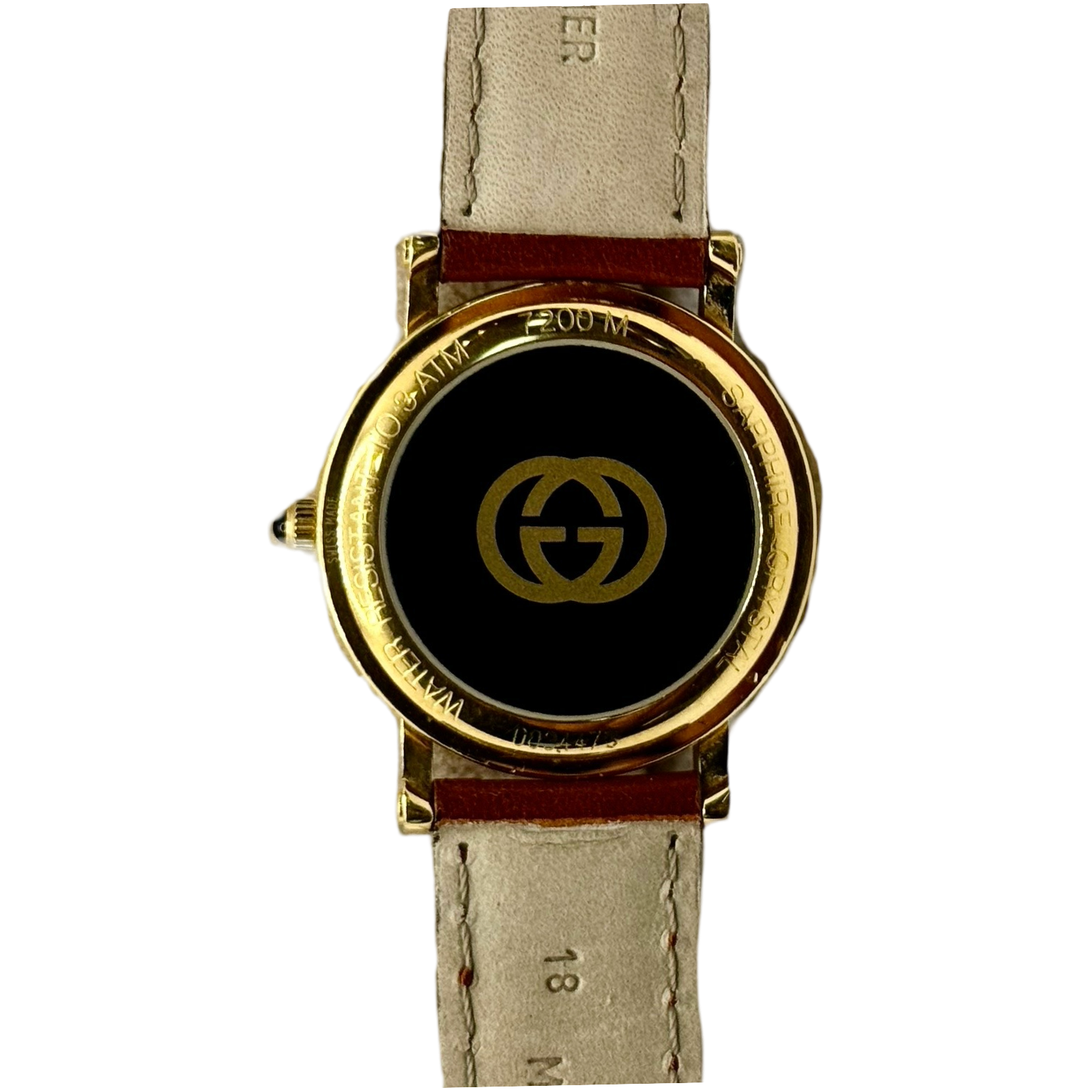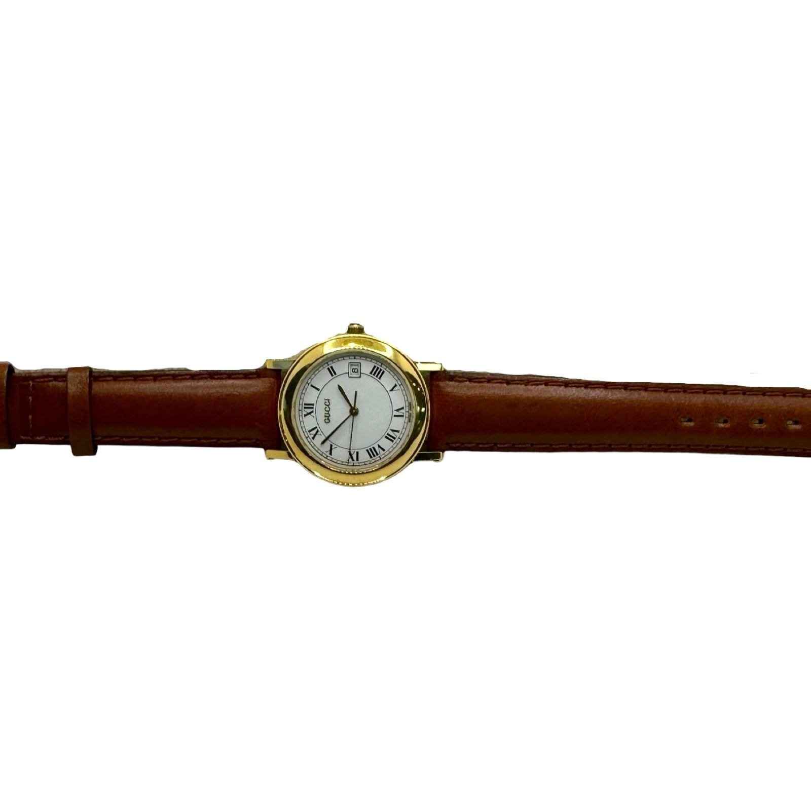 Gucci 7200M 18K Goldplated Case White Dial Brown Leather Strap
