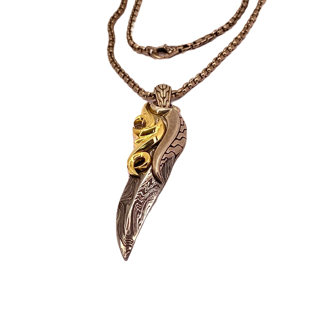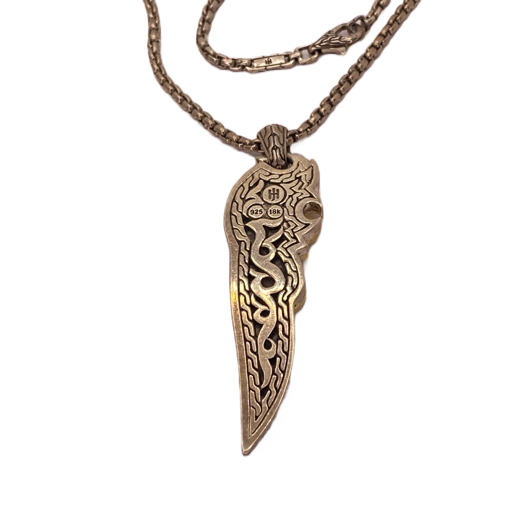 John Hardy 18K and .925 Silver Mens Keris Damascus Dagger Classic Chain Pendant