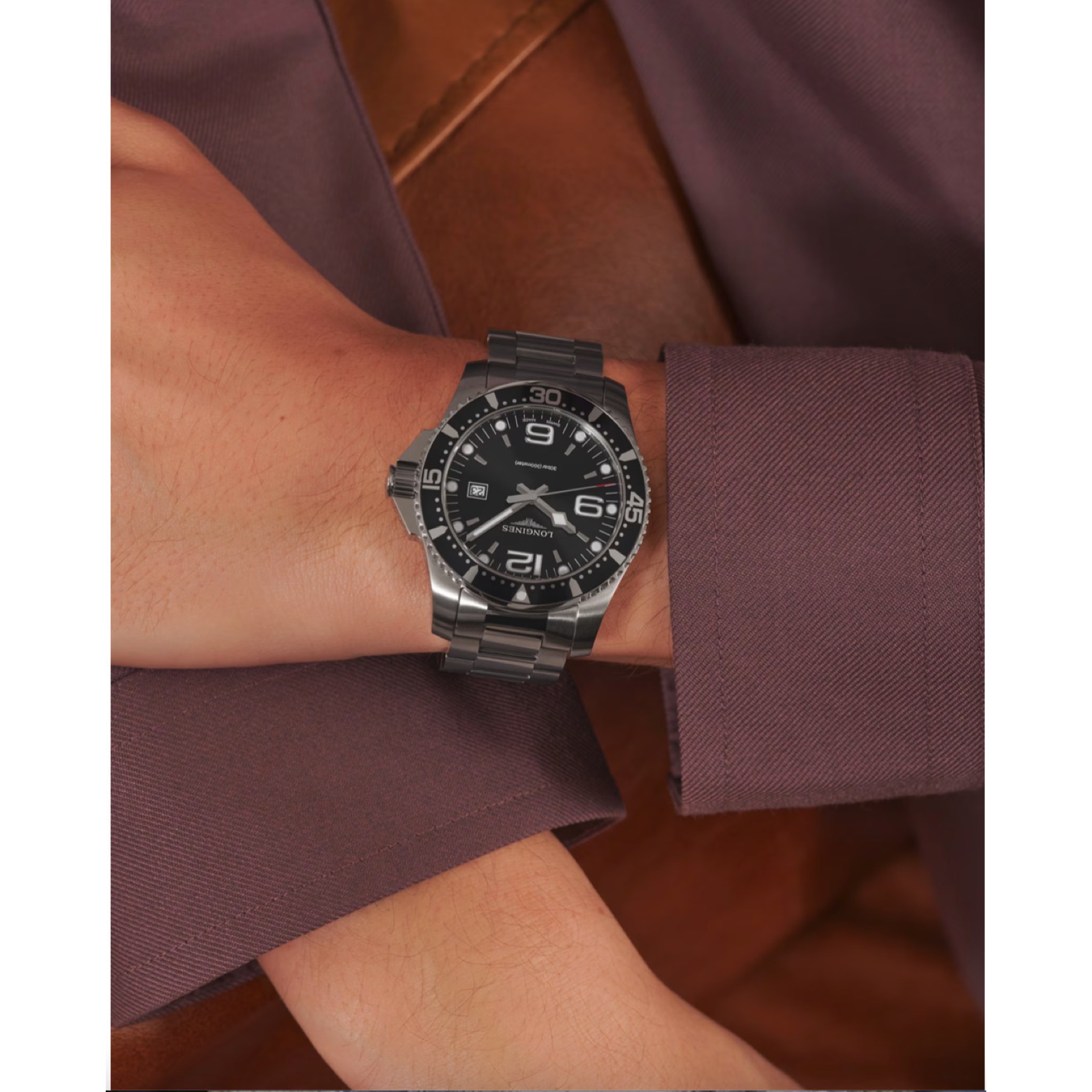 Inspired by the world of water sports, the HydroConquest collection stands out with its daring design. Water-resistant up to 30 bar (300 m) with a unidirectional rotating bezel and screw-down crown and case back, it guarantees exceptional reliability at all times.