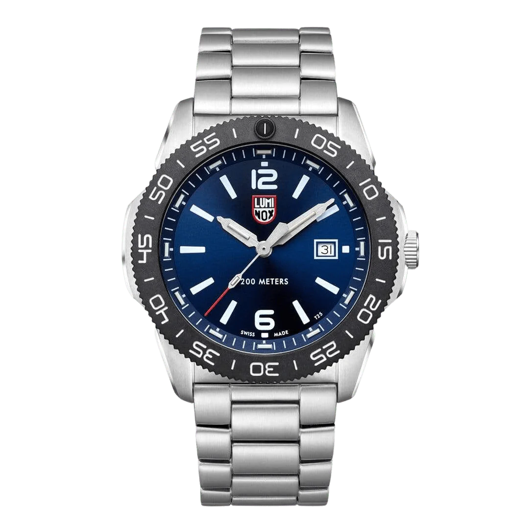 The Pacific Diver is an appealing casual watch for outdoor explorers, as well as for everyday wear, while remaining true to the Luminox brand DNA. Combining a stainless steel case, together with a CARBONOX™ bezel, results in an eye-catching fusion of materials. An easy to read sunburst blue dial with white numerals and hands is combined with a stainless steel bracelet. As with any Luminox, it features our cutting-edge Luminox Light Technology, for self-powered illumination for up to 25 years.