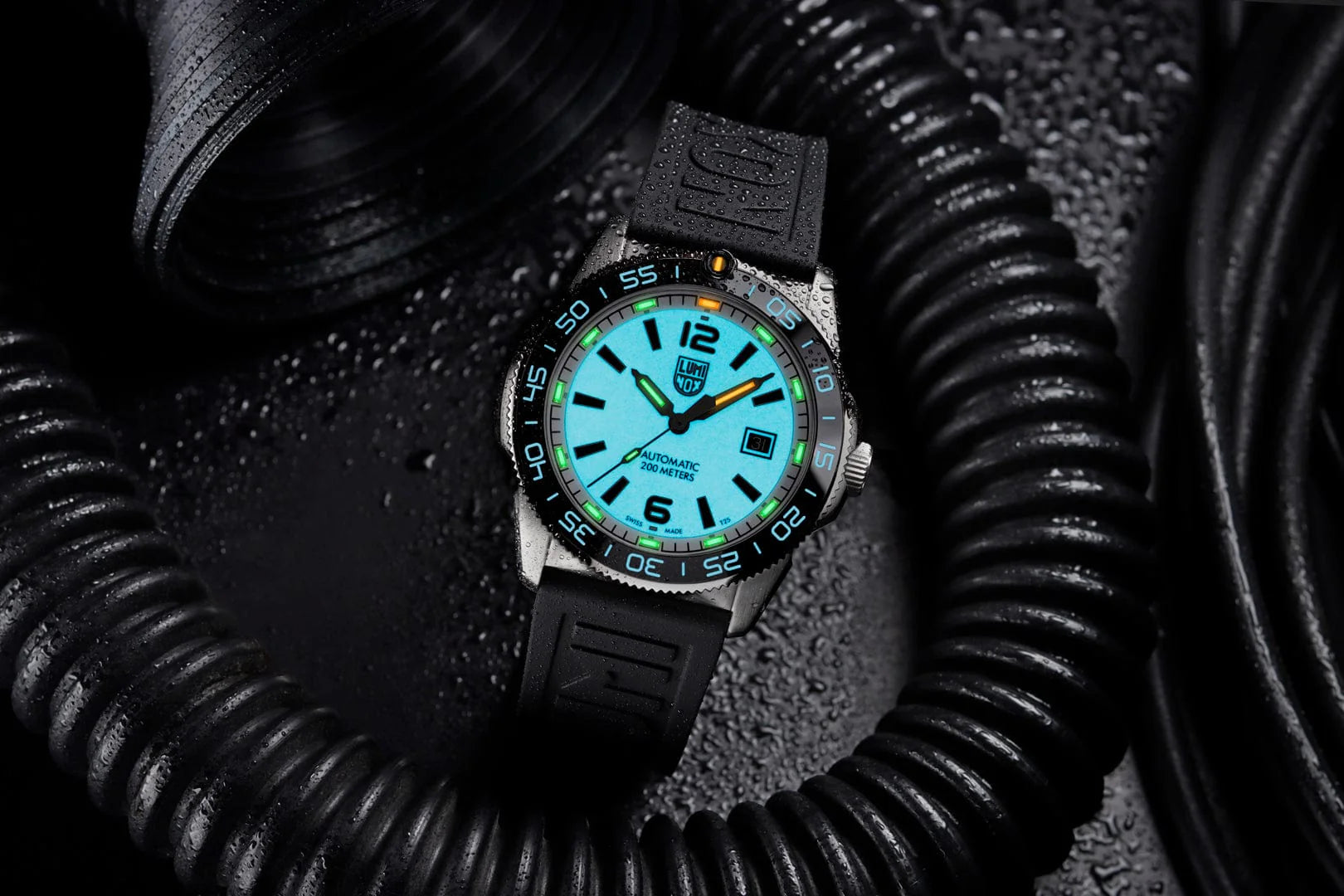 This remarkable wristwatch is part of the Heritage Collection which celebrates Luminox’s 35 years of groundbreaking light technology. For maximum visibility, this timepiece features 16 LLT tubes and a white-textured dial fully coated with Super-LumiNova®, which gives it an aquatic glow when charged and activated in dark light conditions. In addition, the numbers on the bezel are painted with Super-LumiNova®, making this watch Luminox’s most luminous piece to date. Powered by a SELLITA automatic movement, the watch combines a 42mm stainless-steel uni-directional bezel with a black strap and a black ceramic ring insert on the bezel. Whether you’re in the office, catching a wave, or hundreds of meters underwater, this dynamic timepiece is engineered for peak performance.