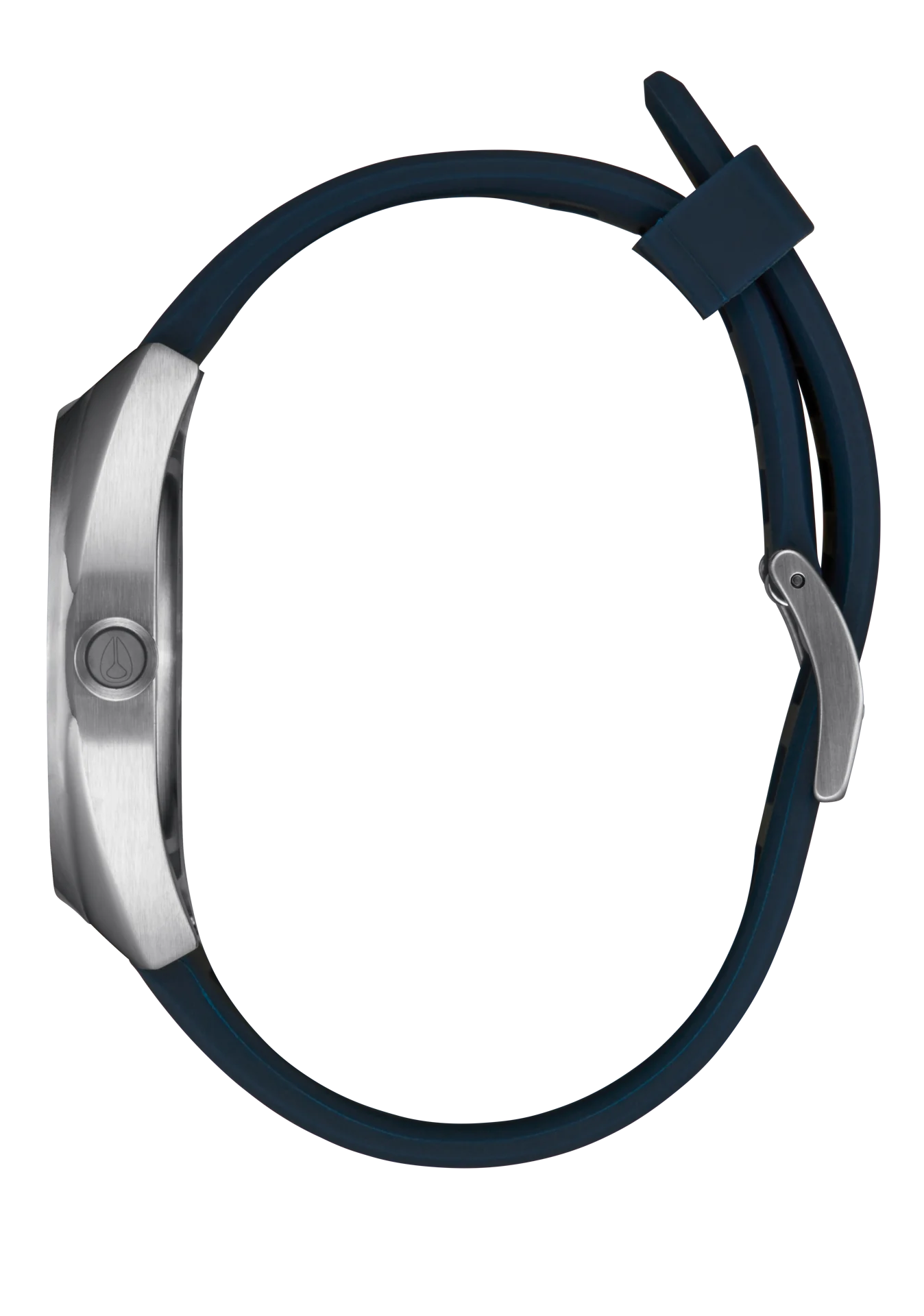 Traditional analog design cues are modernized by the ultra-thin case with tapered dimensions. Taking it a step further, the silicone band was designed for action and the elevated dial features up-printed numerals for fast time reading.
