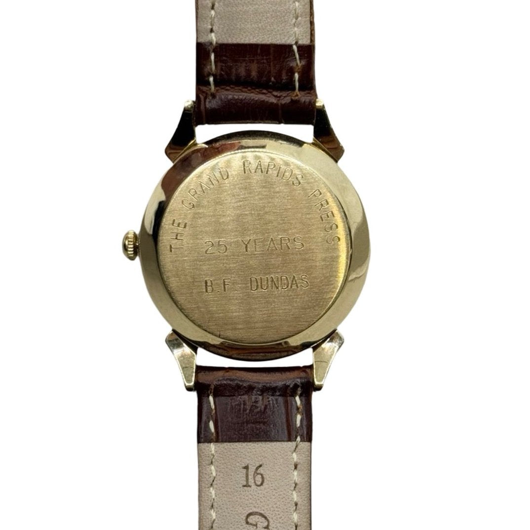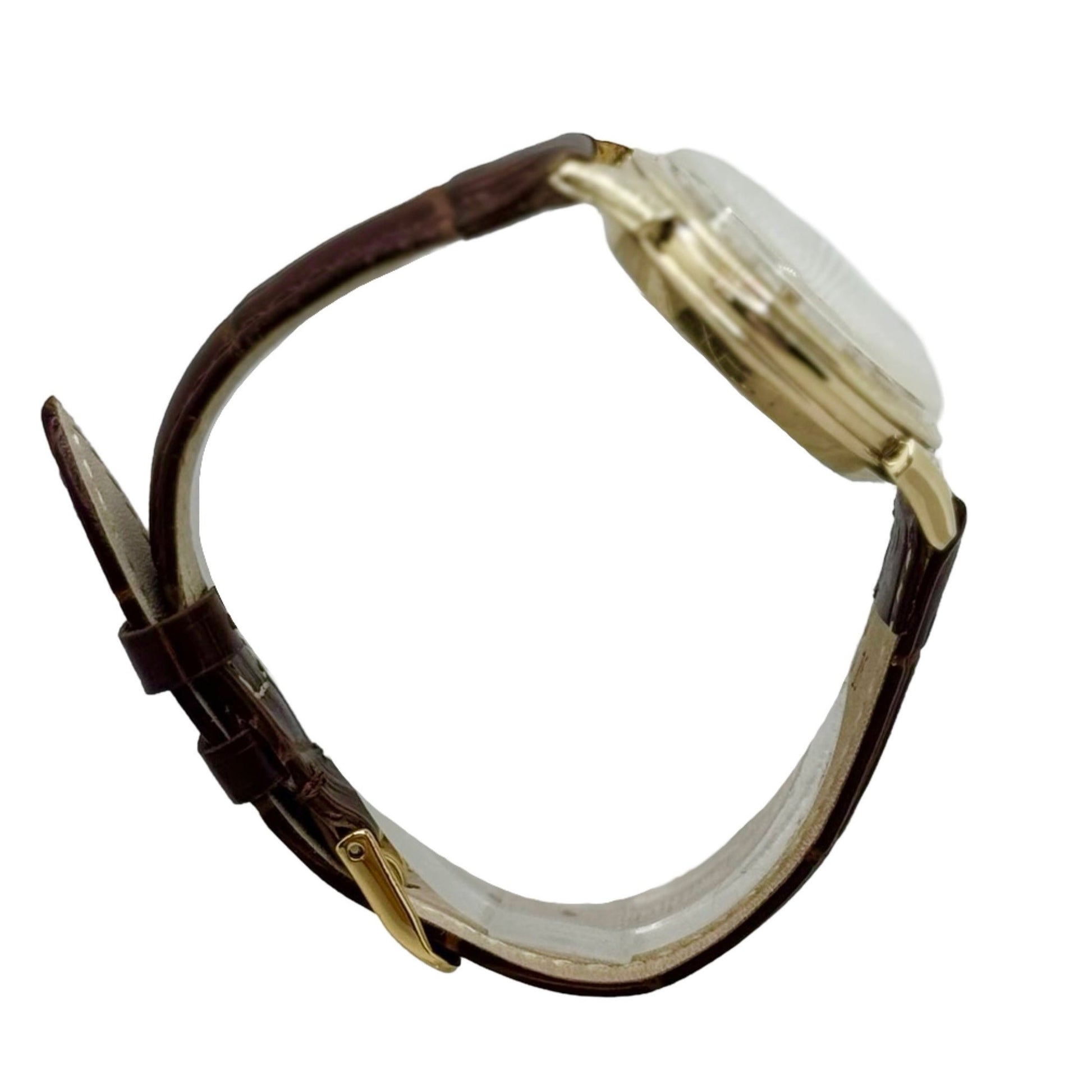 Condition: Good pre-owned condition, shows signs of wear, original dial, original crown, original hands, crystal, personal engraving on the caseback, original Omega strap included. A rare find Omega movement Caliber 490, case has a 14K gold stamp at 12 o'clock lug