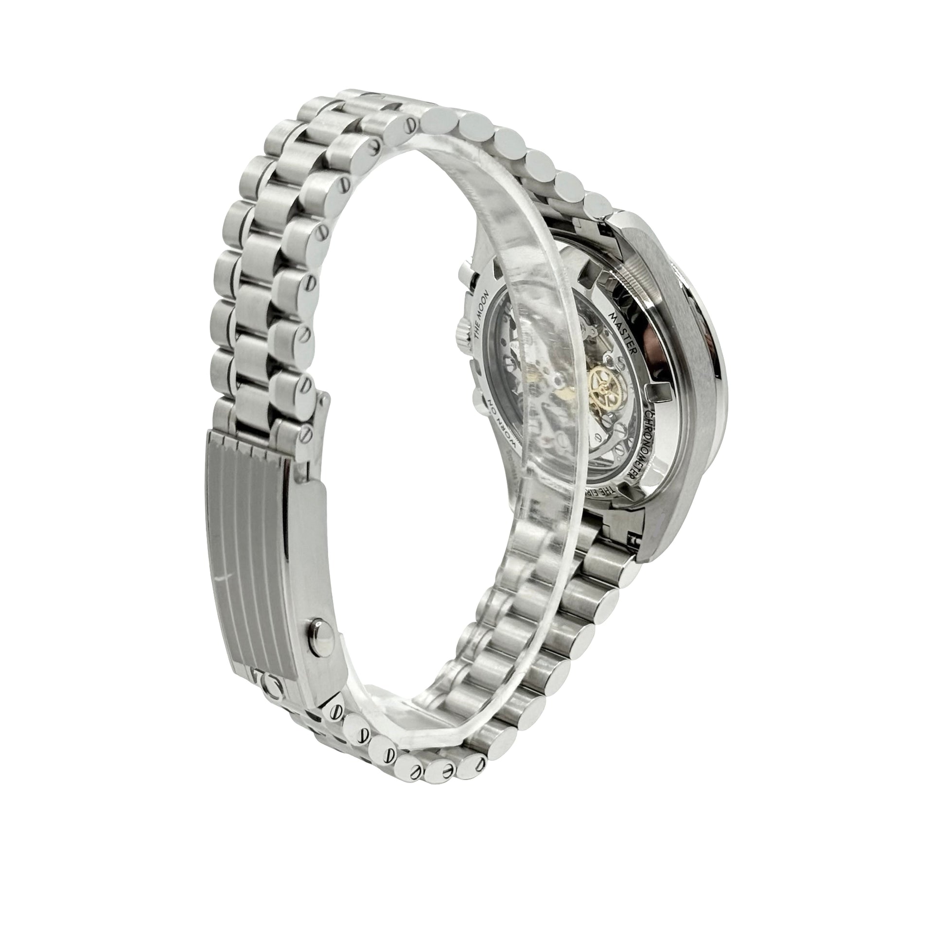 Functions: Anti-magnetic, chronograph, chronometer, master chronometer certified, small seconds, tachymeter, transparent caseback