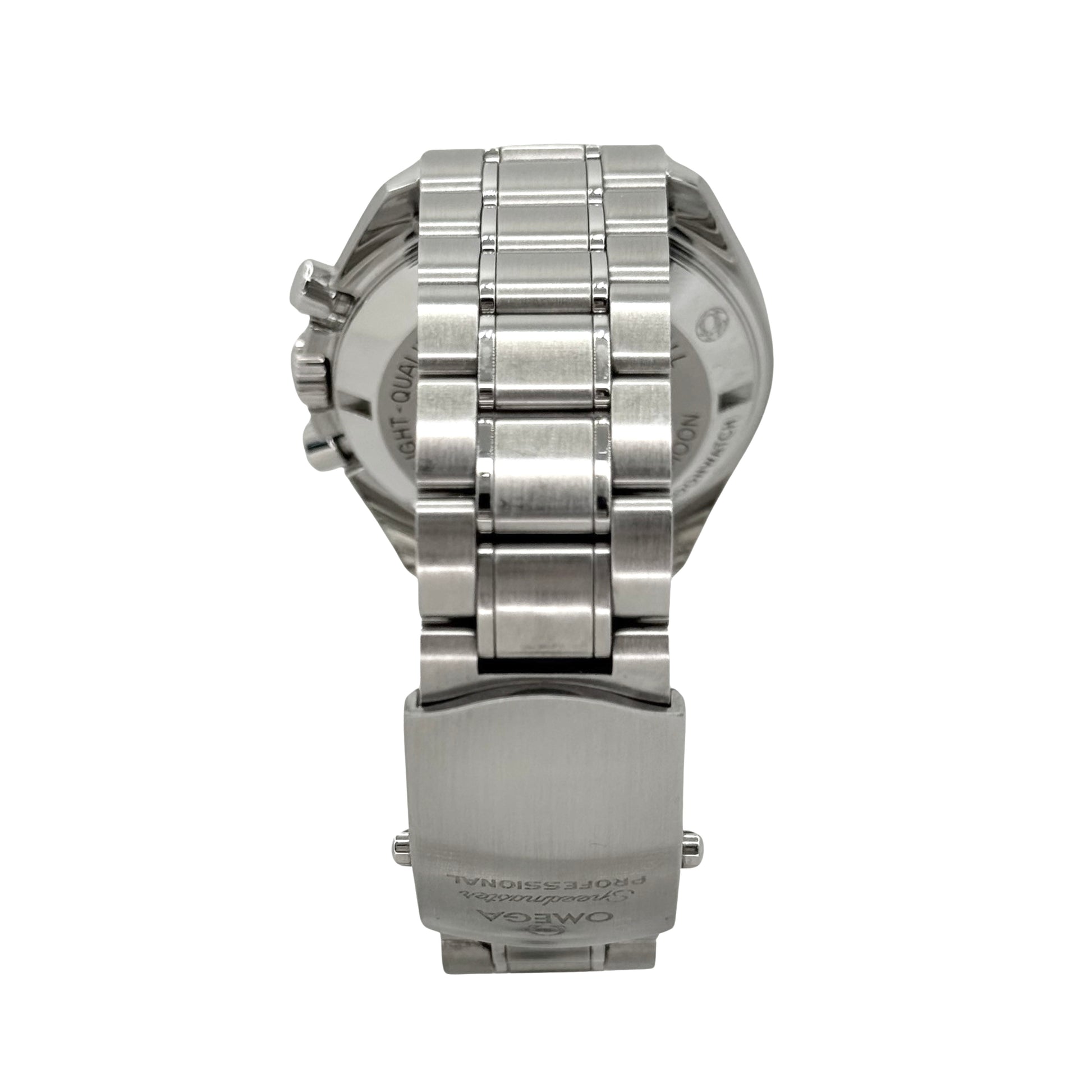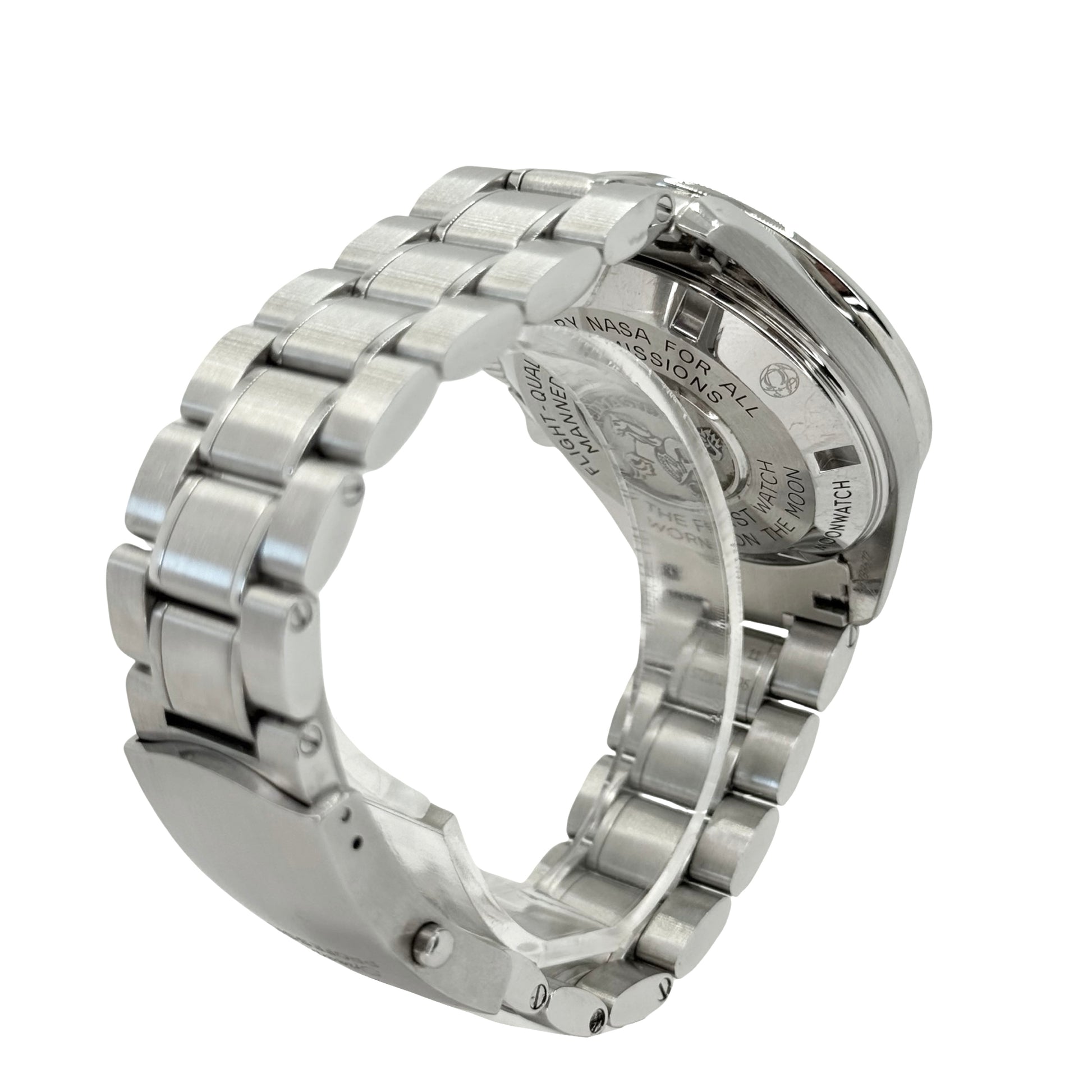 This OMEGA Speedmaster Professional “Moonwatch” features a black dial covered by a hesalite crystal and graced by a small seconds sub-dial, 30-minute recorder and 12-hour recorder along with a central chronograph hand. The black bezel, with its tachymetric scale, is mounted on a 42 mm stainless steel case and presented on a matching bracelet.