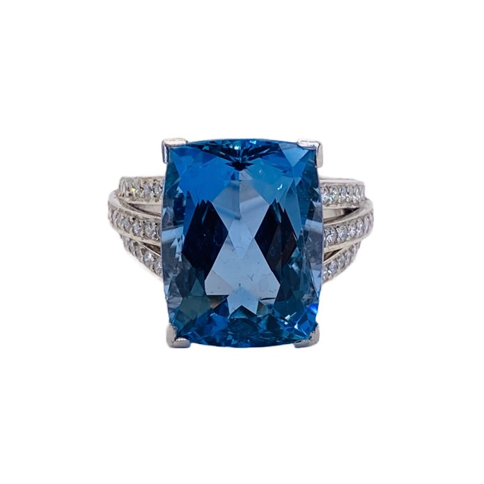 15.00 cts high quality faceted cushion cut blue aquamarine