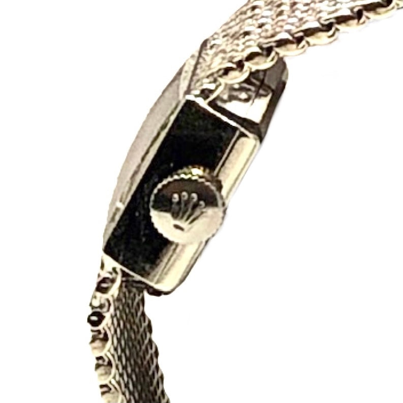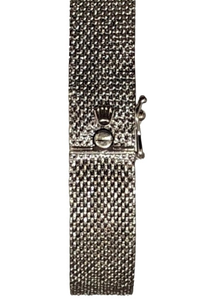 Mesh bracelet integrated into the case, all 14K white gold. A functional piece of jewelry.