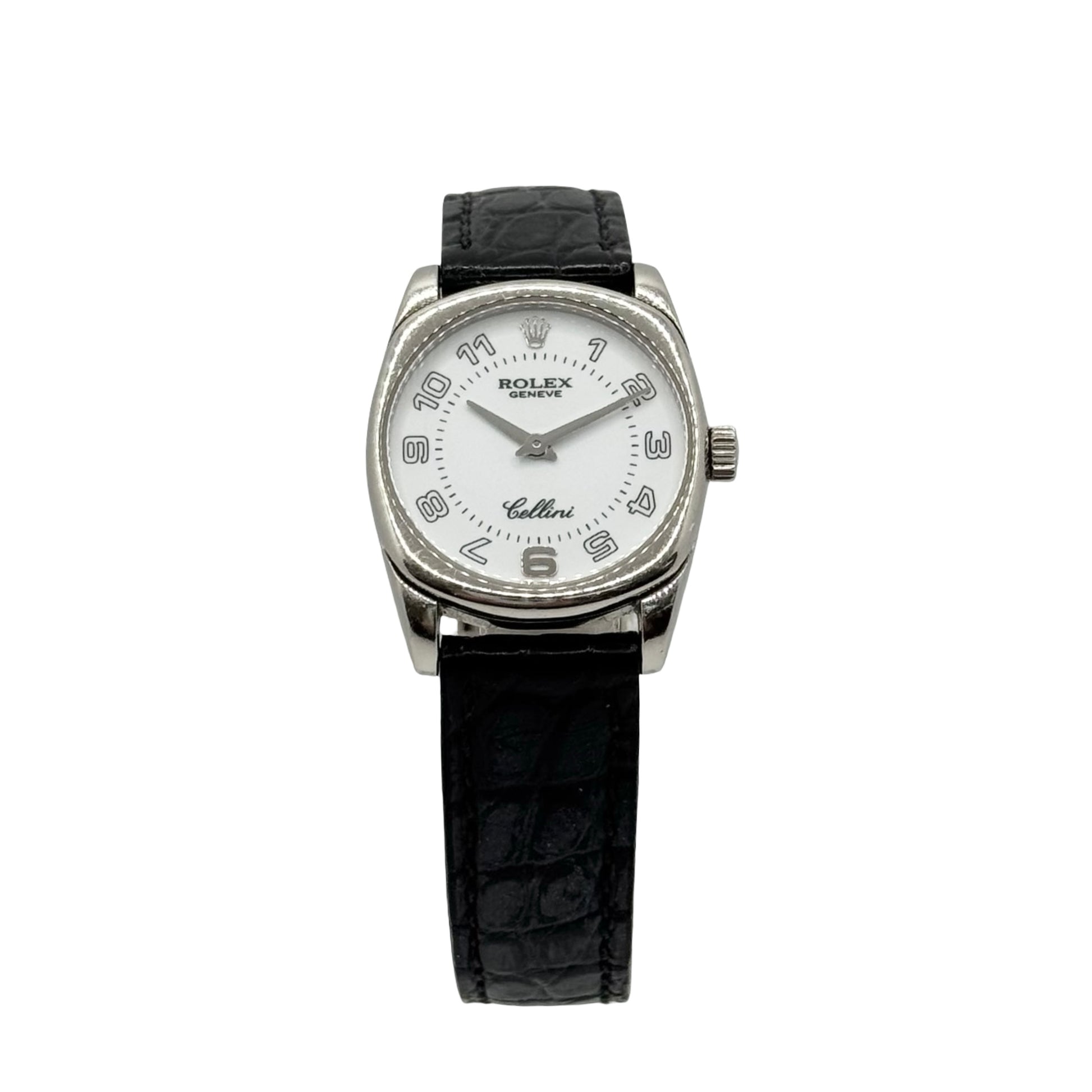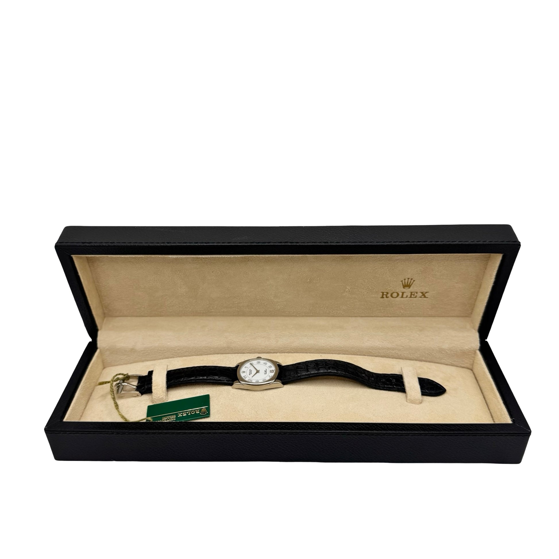 Rolex Cellini Danaos 18K White Gold White Dial Black Leather Strap 6229/9