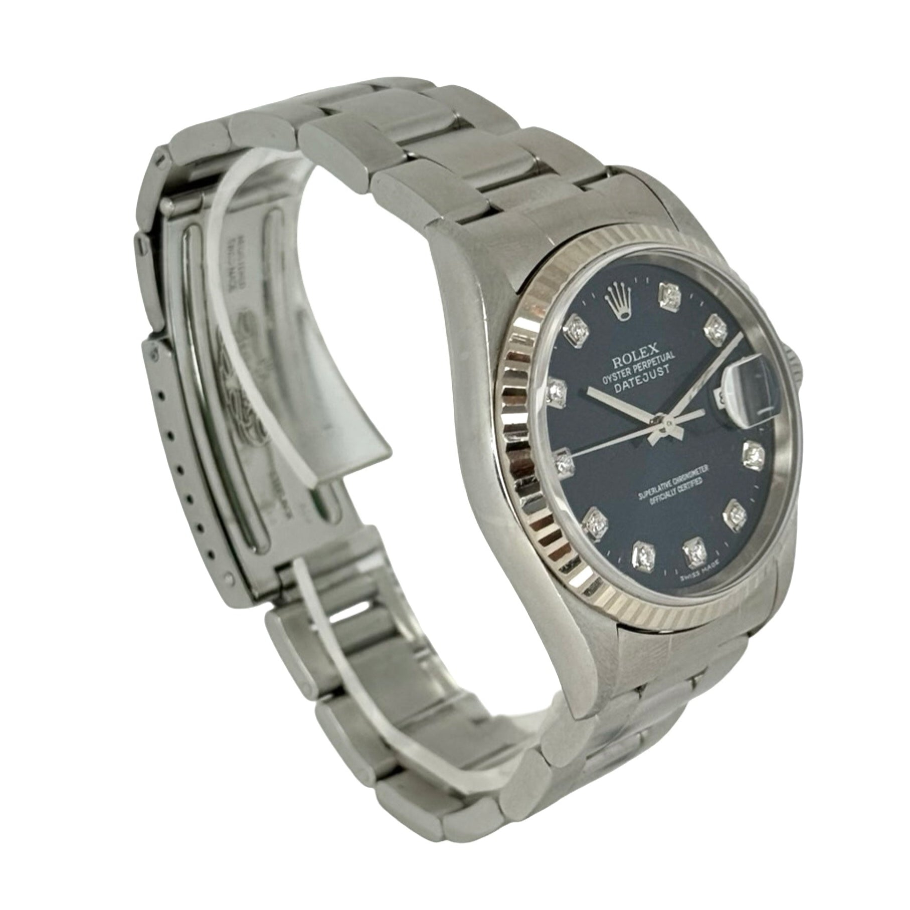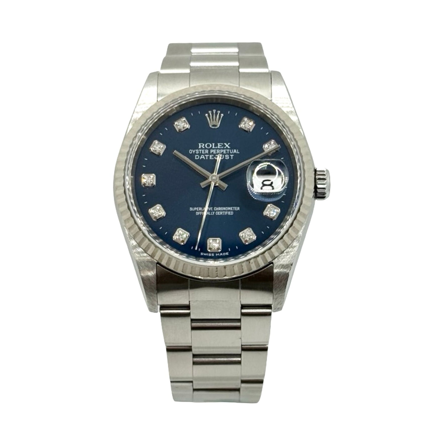 Rolex Datejust 36mm Factory Diamond Blue Dial Fluted Bezel Oystersteel Bracelet 16234