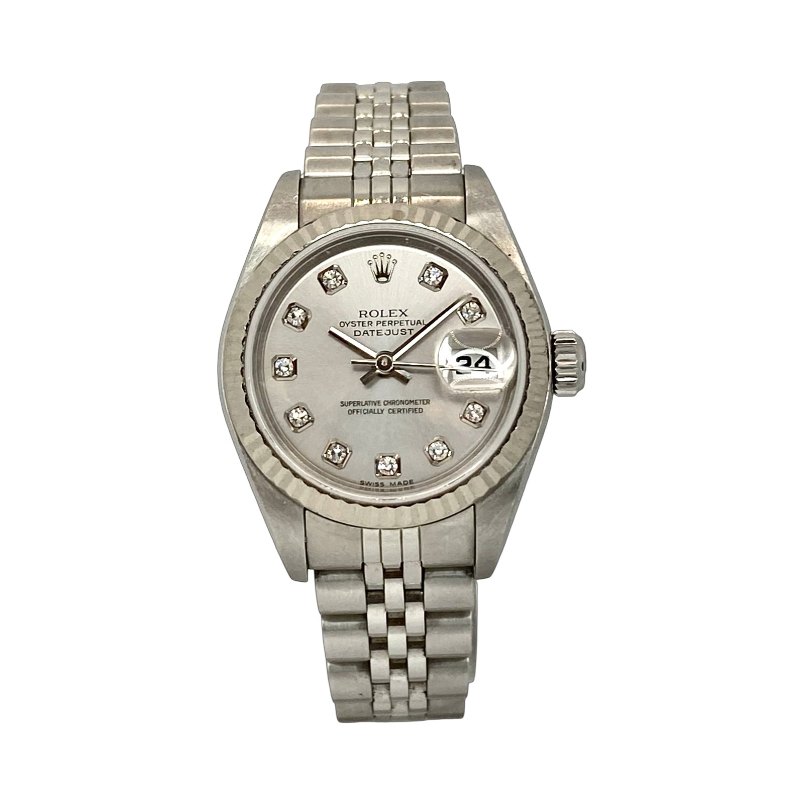 Rolex Lady Datejust 18K White Gold and Steel 26mm Factory Rhodium Diamond Dial Jubilee Bracelet 79174