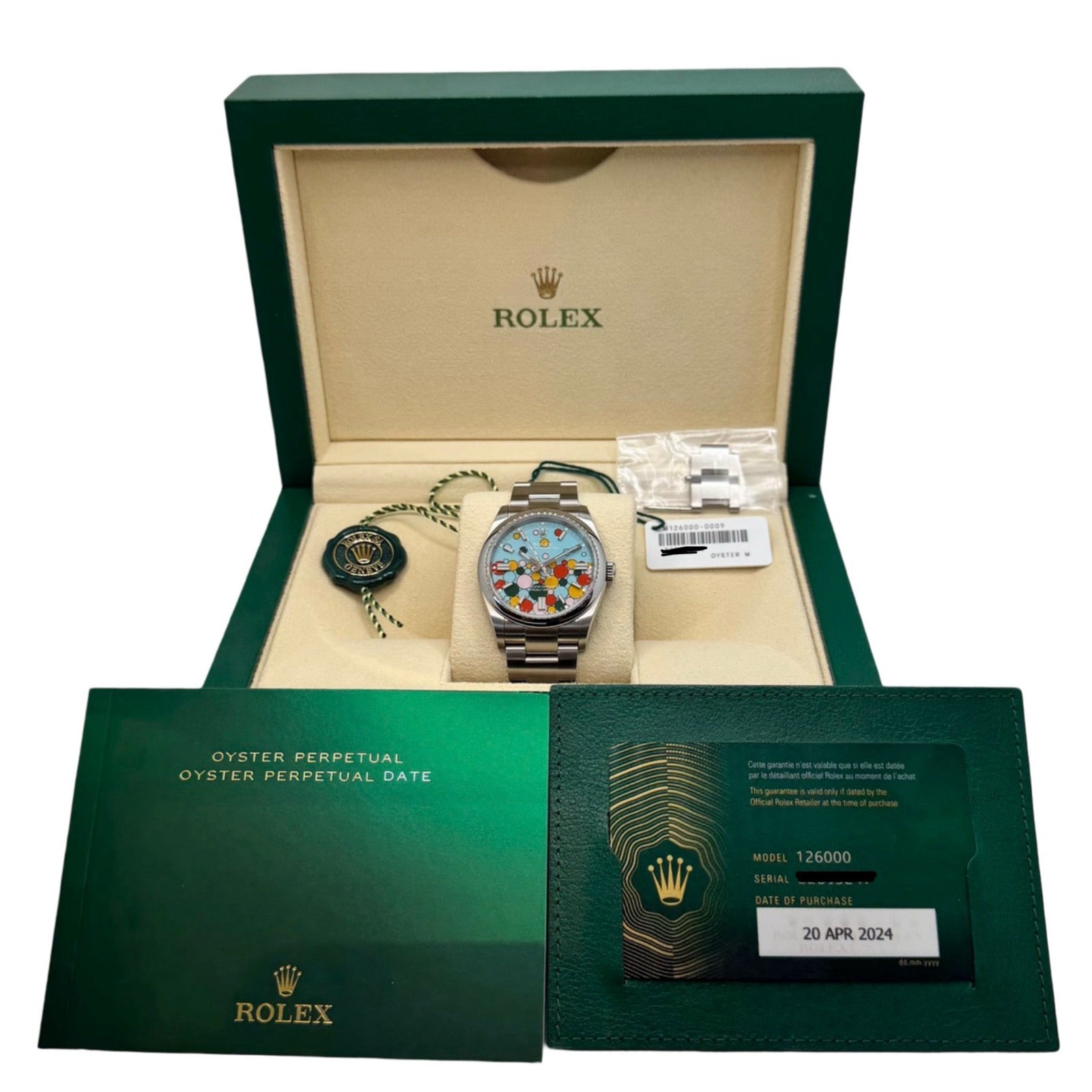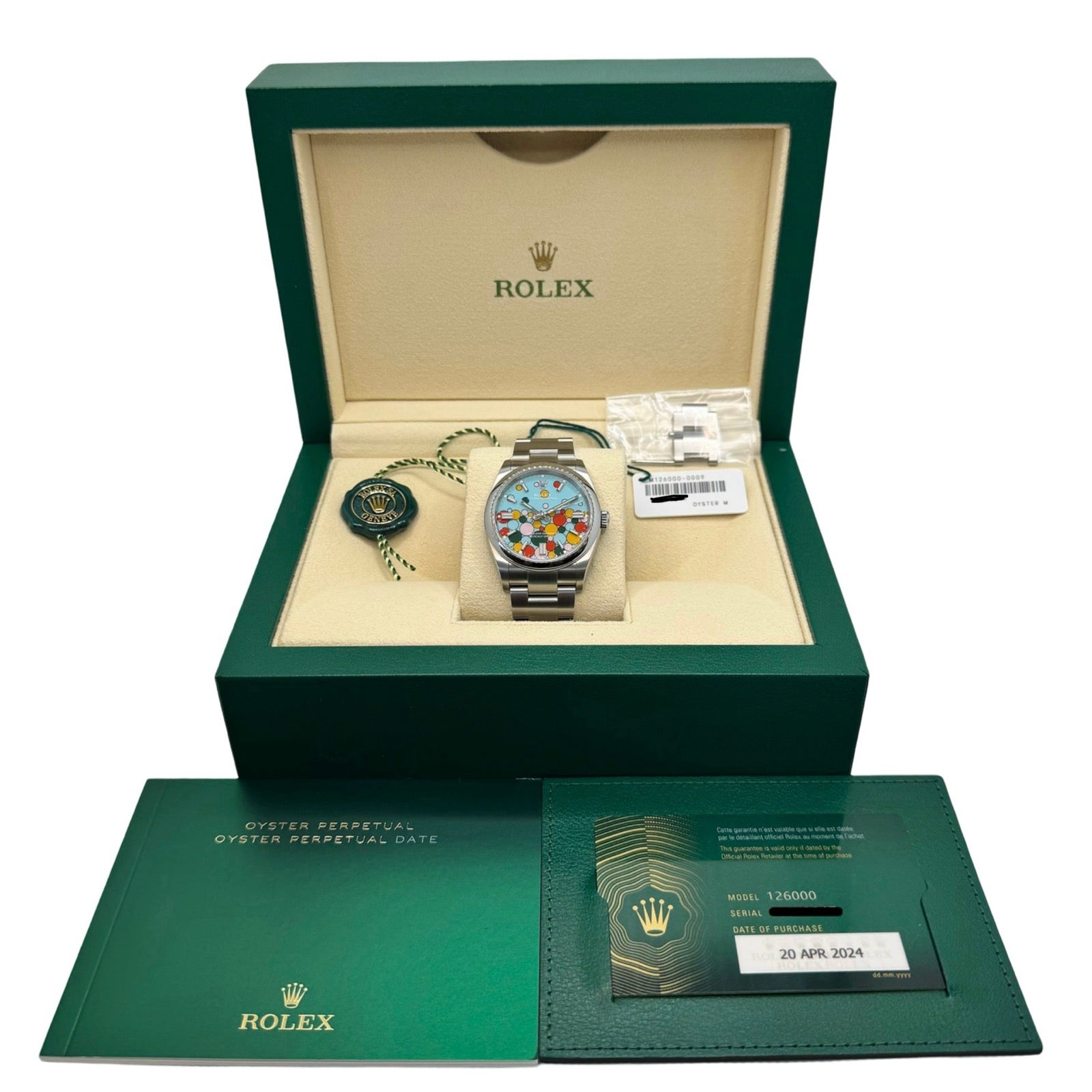 Rolex Oyster Perpetual 36mm Turquoise Blue "Celebration" Motif Dial Oyster Bracelet M126000-0009