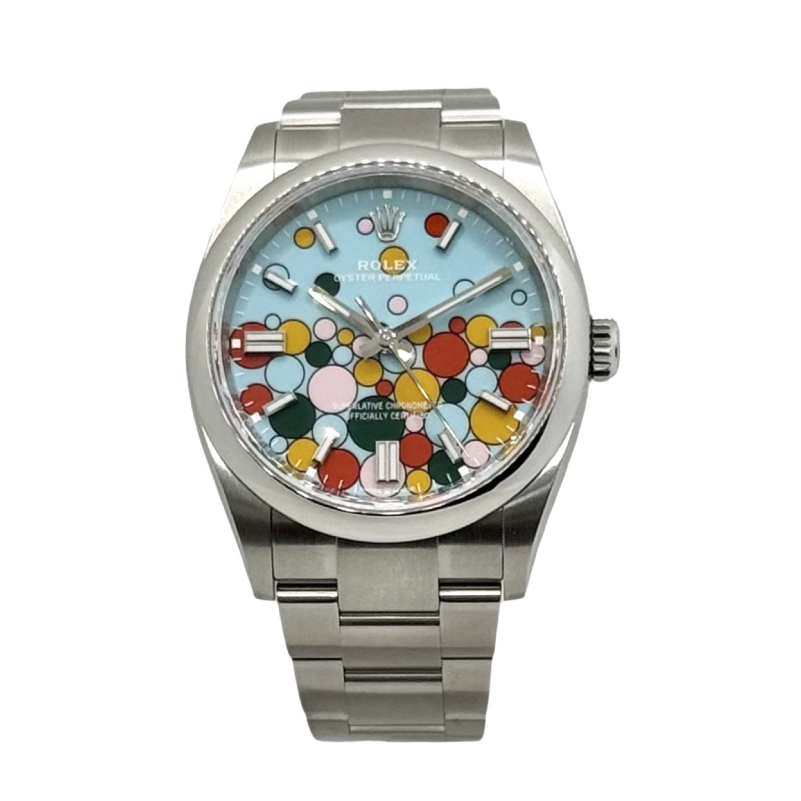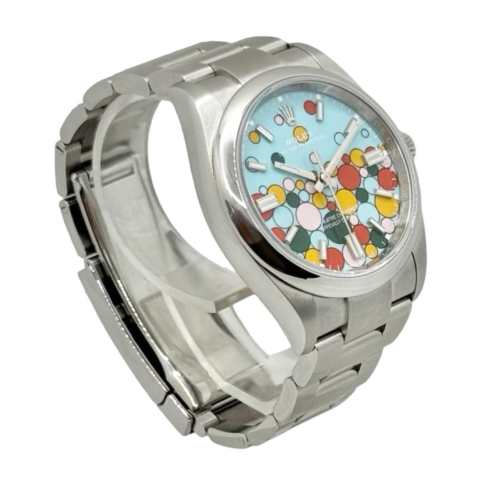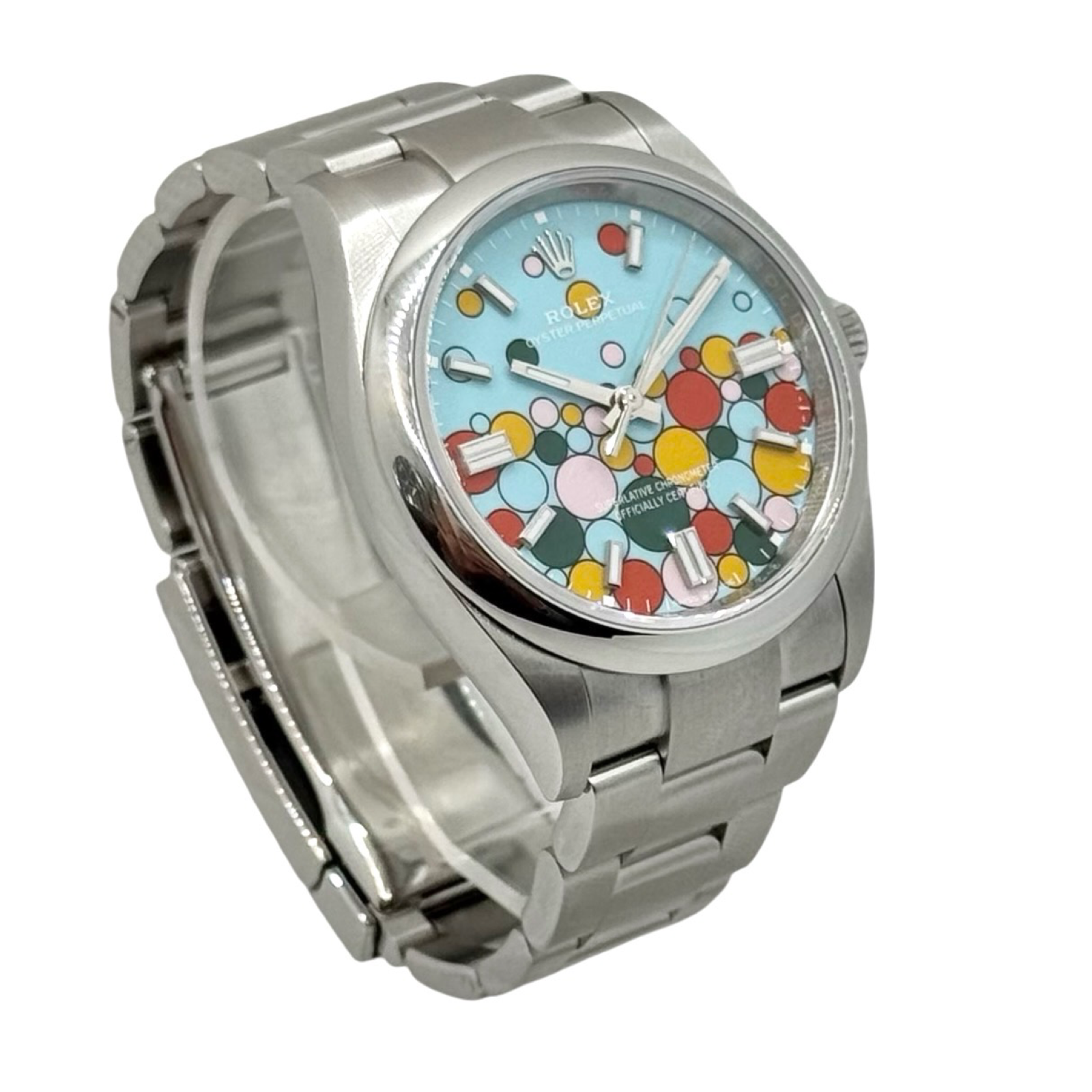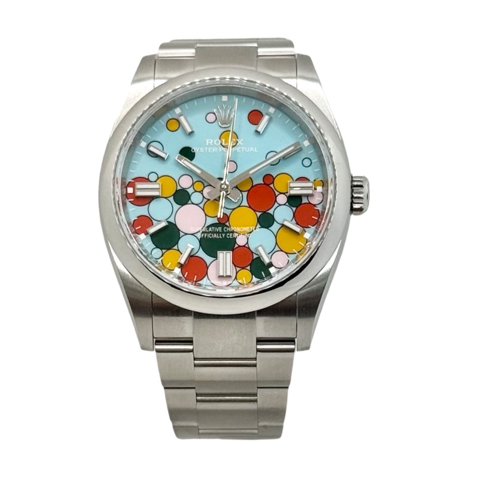 Rolex Oyster Perpetual Turquoise Blue Celebration Motif Dial
