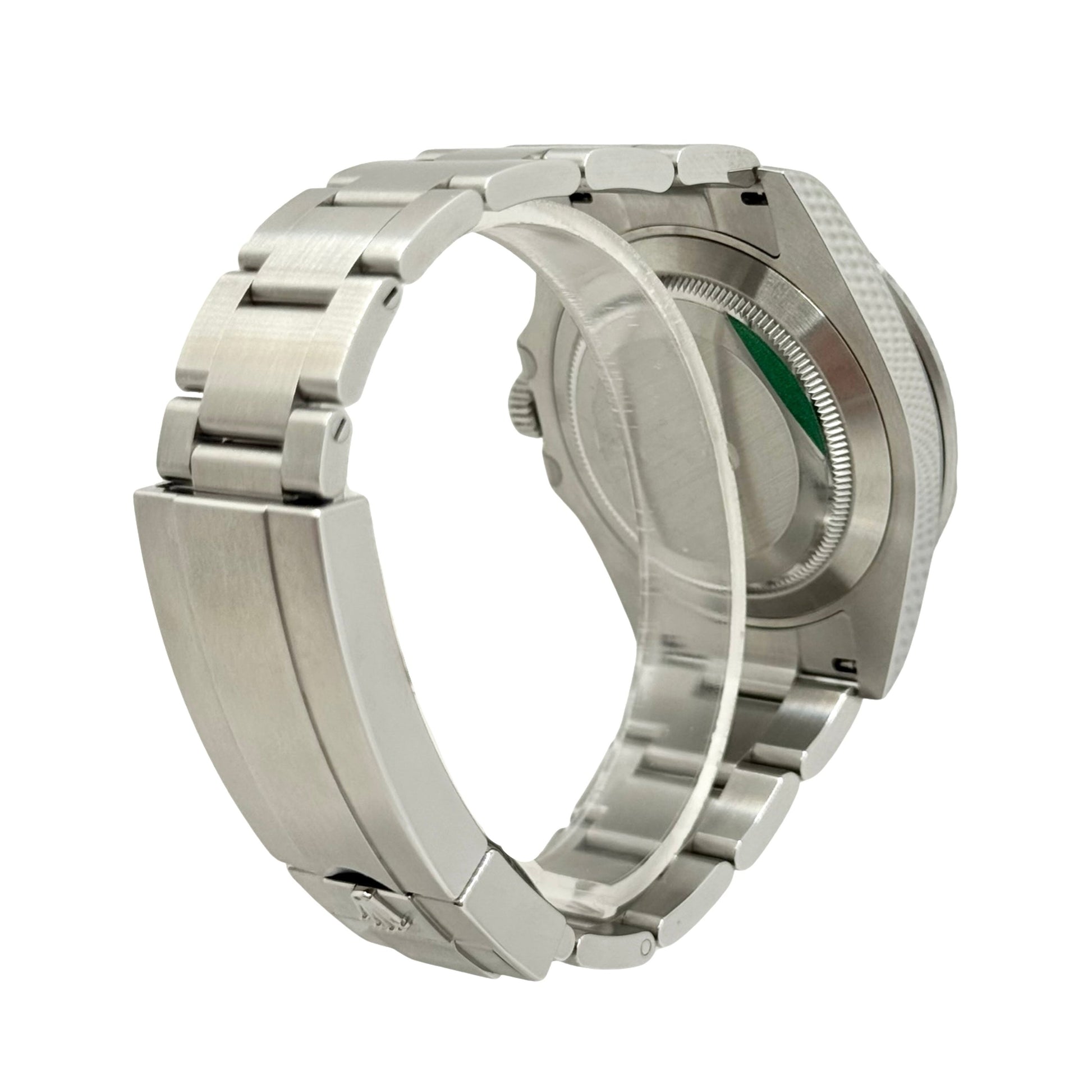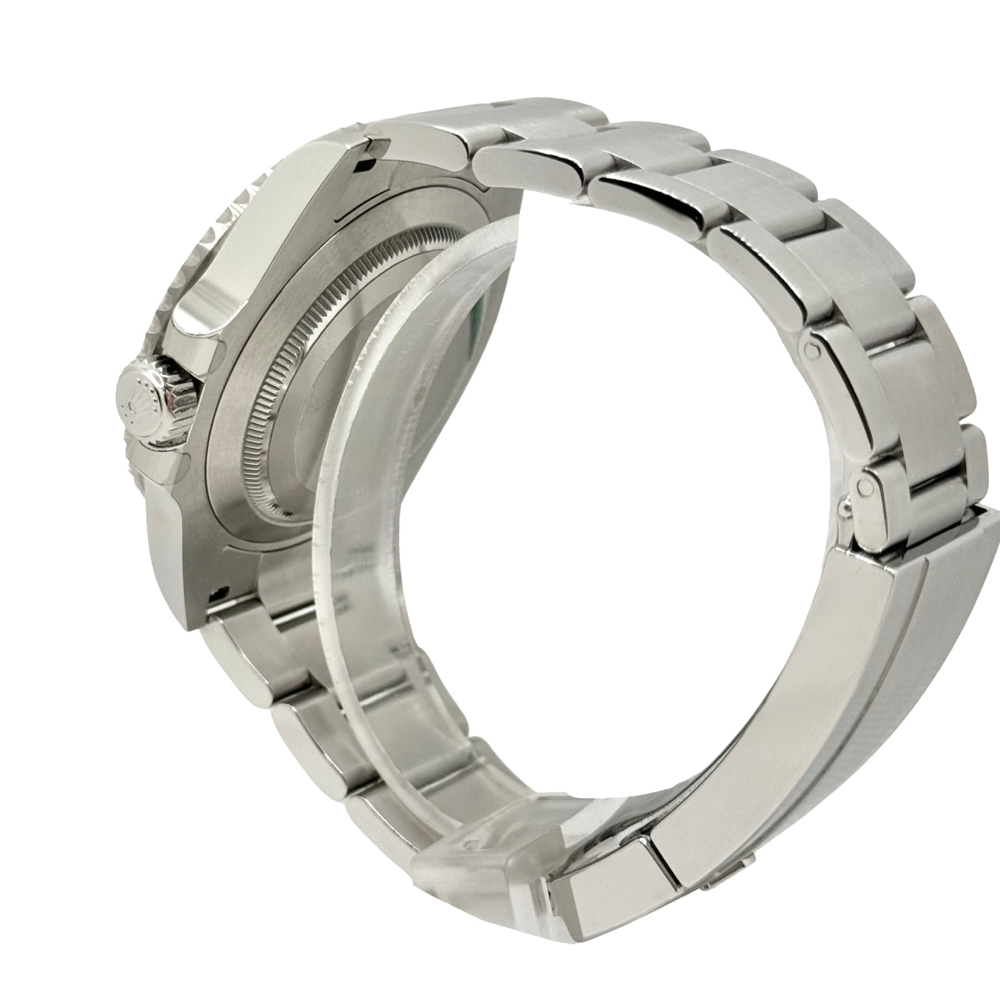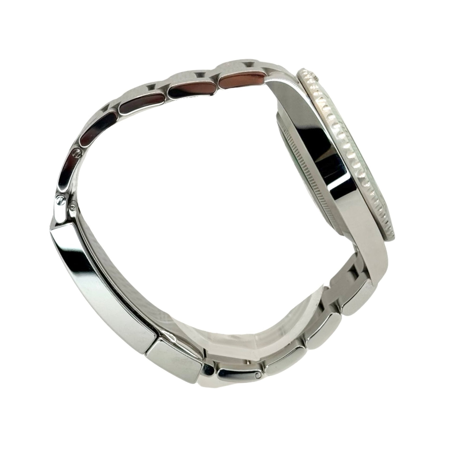 It is equipped with an Oysterlock clasp, which prevents accidental opening, and an ingenious Glidelock, allowing fine adjustments of the bracelet without using any tools — and allowing it to be worn comfortably over a diving suit.