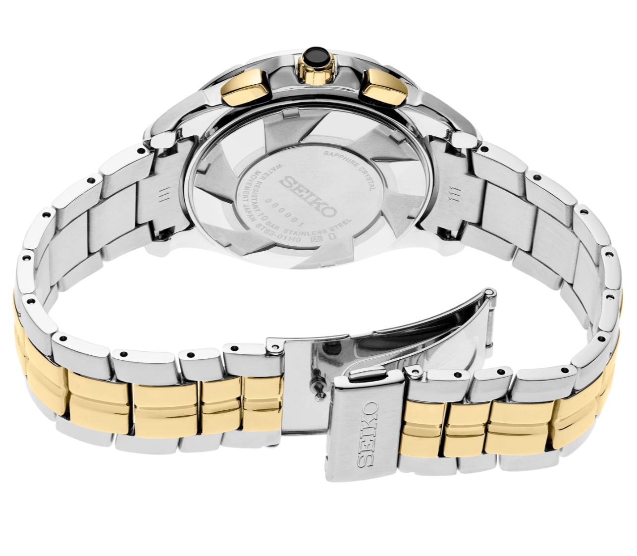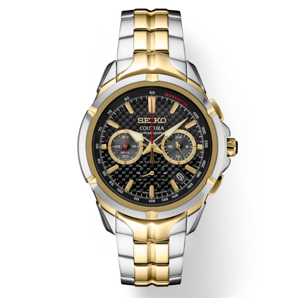 Seiko Coutura Quartz Chronograph Black Carbon Fiber Pattern Dial Two-Tone SSB434