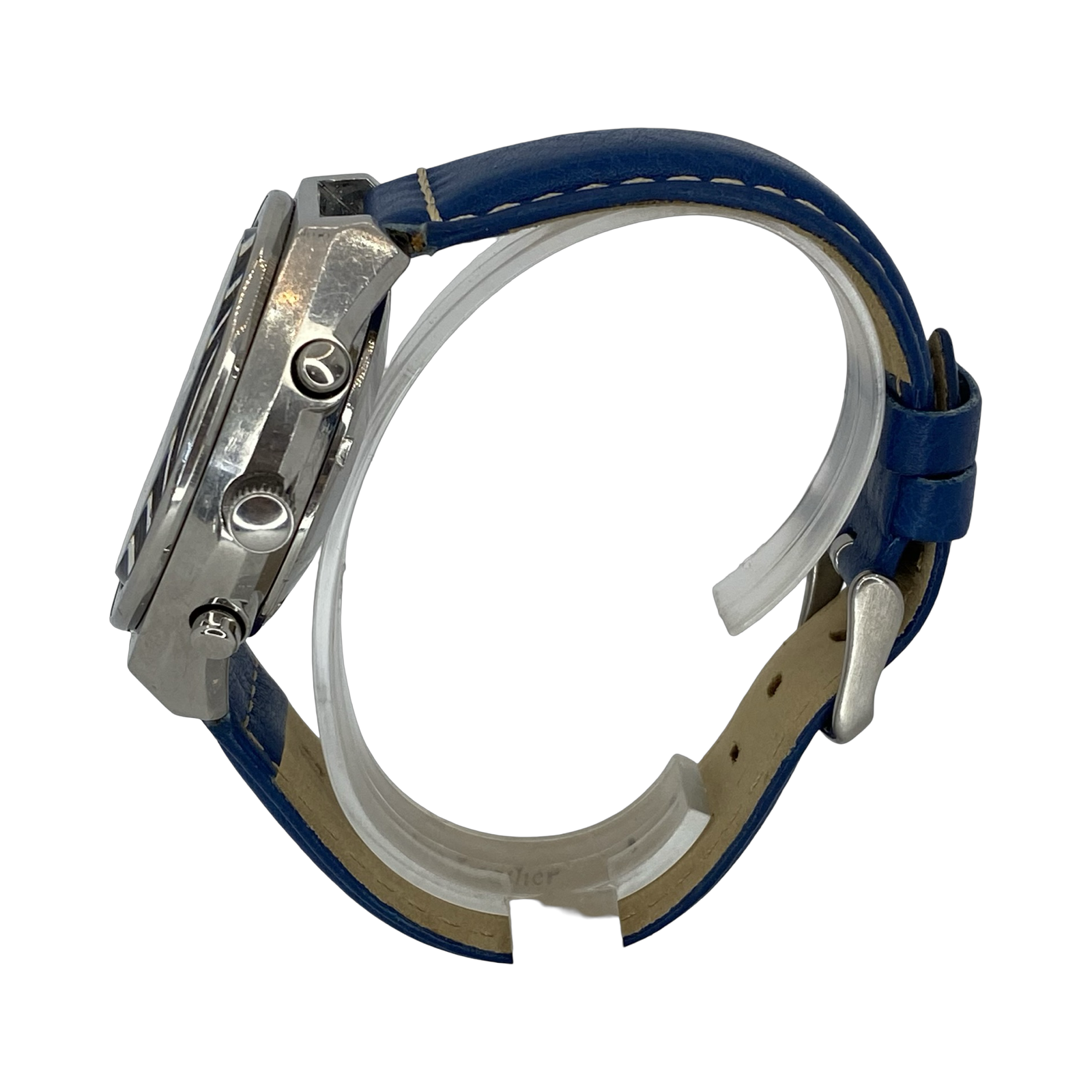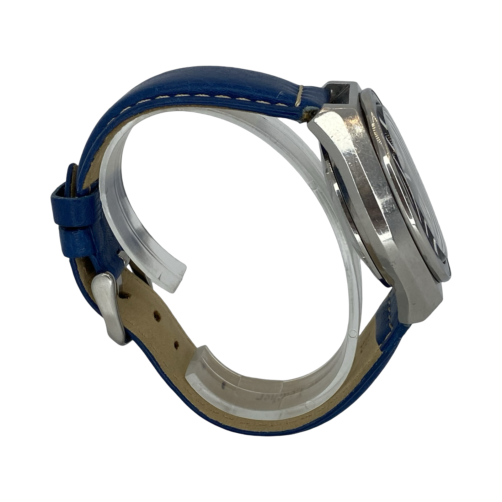 Condition: Good pre-owned condition, shows visible signs of wear but all functions are working. Blue leather aftermarket strap