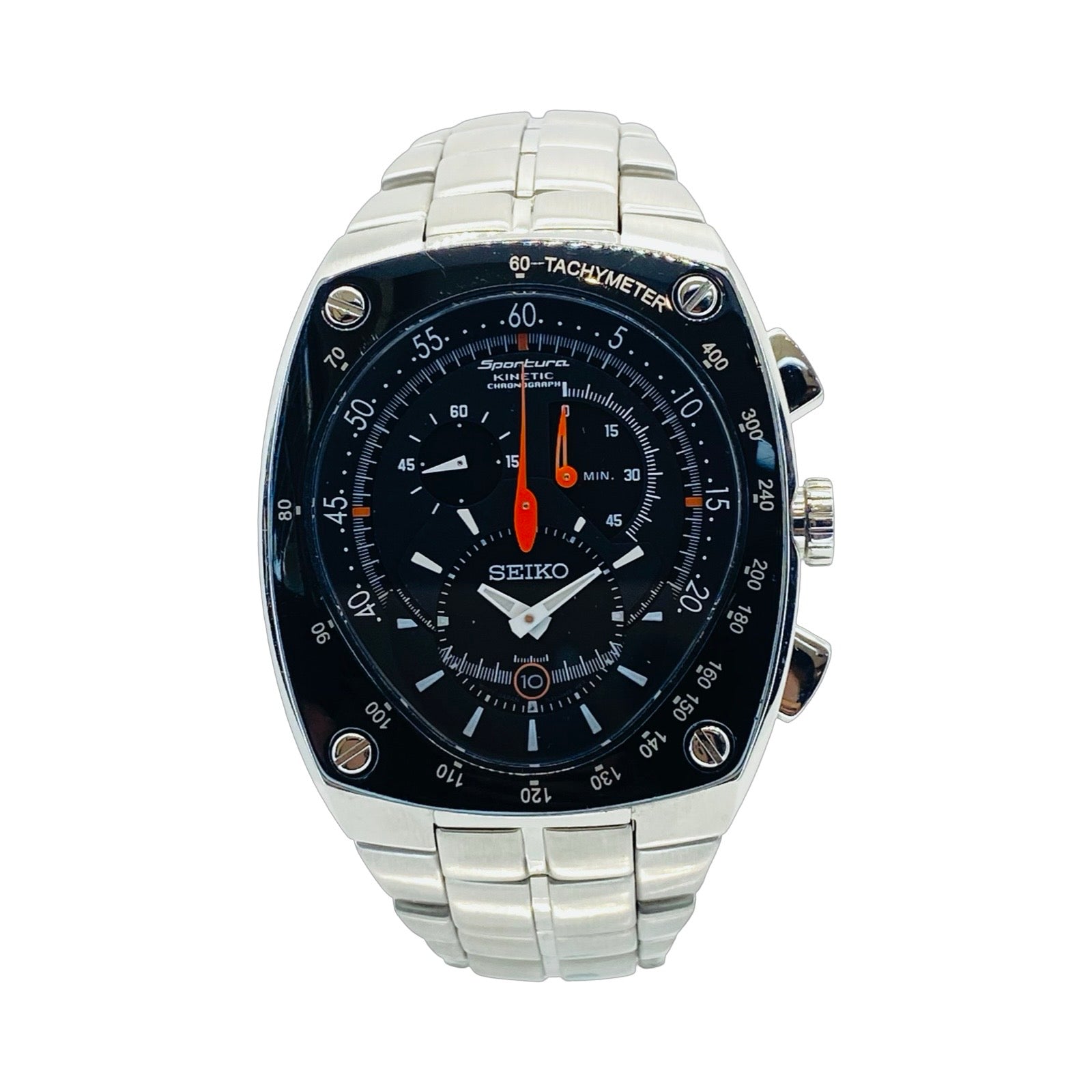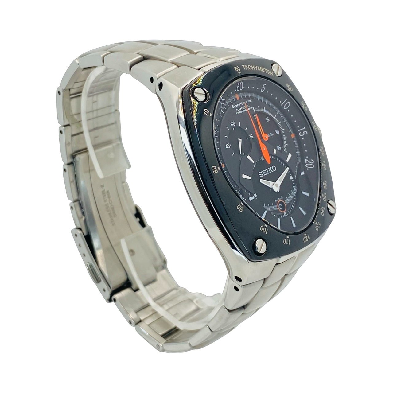 Seiko Sportura Kinetic Chronograph Black Dial Stainless Steel Bracelet SNL015