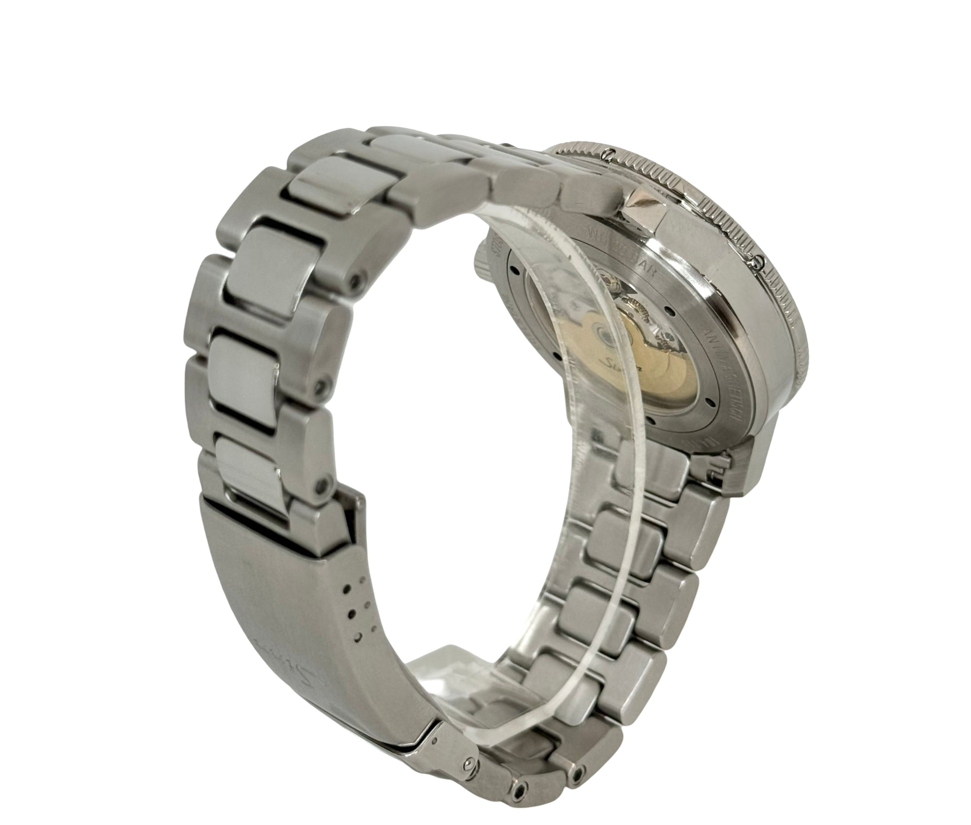 Functions: Hour, minute, central sweeping second, quick set day of the week display and date display, Pilot's bezel with minute ratcheting and luminous key mark, anti magnetic, Seconds stop function (hack feature)