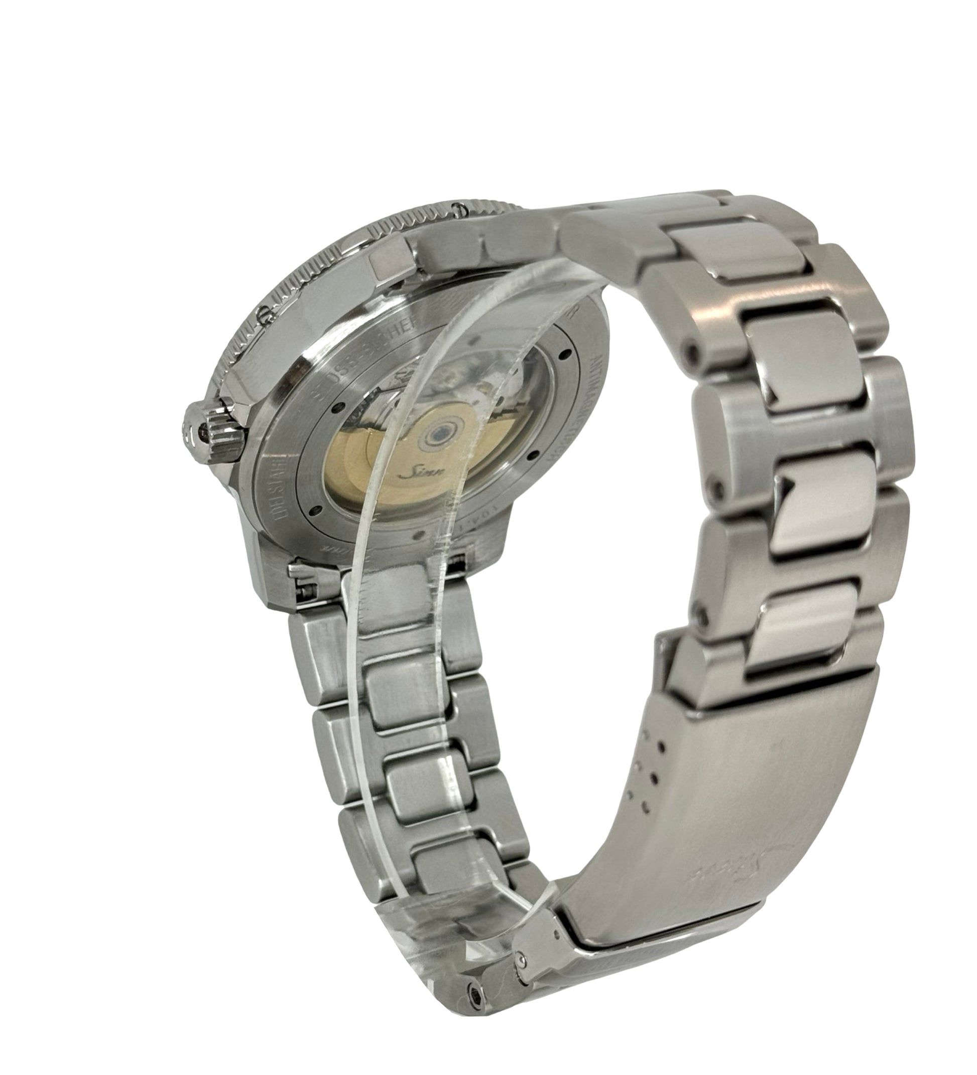 For this model, we chose a distinctive colouring with a shimmering metallic-green dial. The instrument watch features a polished stainless-steel case. The crystal and transparent back made of sapphire crystal allows the accuracy of the mechanical movement to be admired. The pilot’s bezel with minute ratcheting can be rotated on both sides and is securely attached to the case. Its key mark is a luminous triangle.
