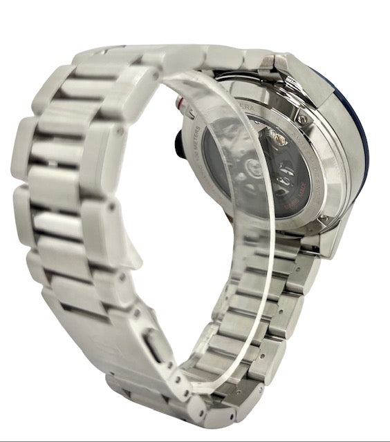 Swiss-made, this bold TAG Heuer Carrera is an aesthetic 43 mm watch. This model features a Steel and Ceramic case and a Calibre Heuer 01 Automatic movement.