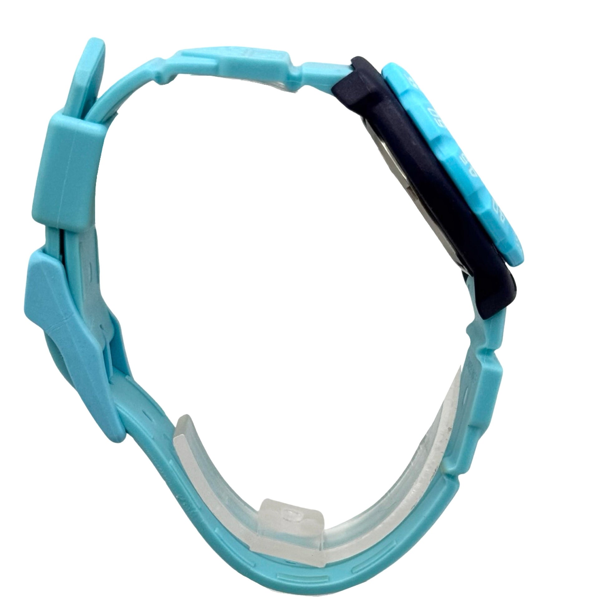 Bezel: Turquoise blue unidirectional rotating bezel with white Arabic 60- minute register