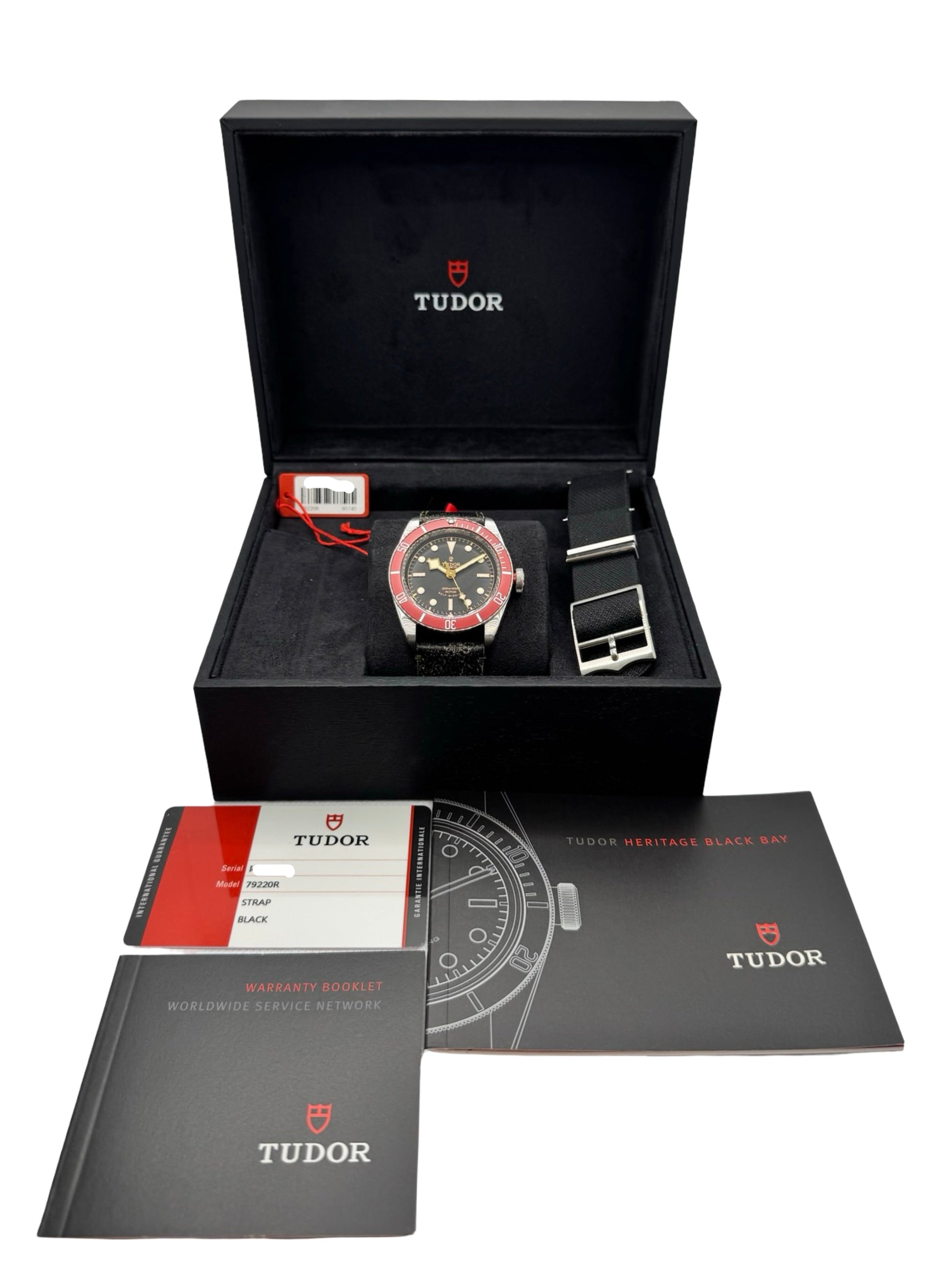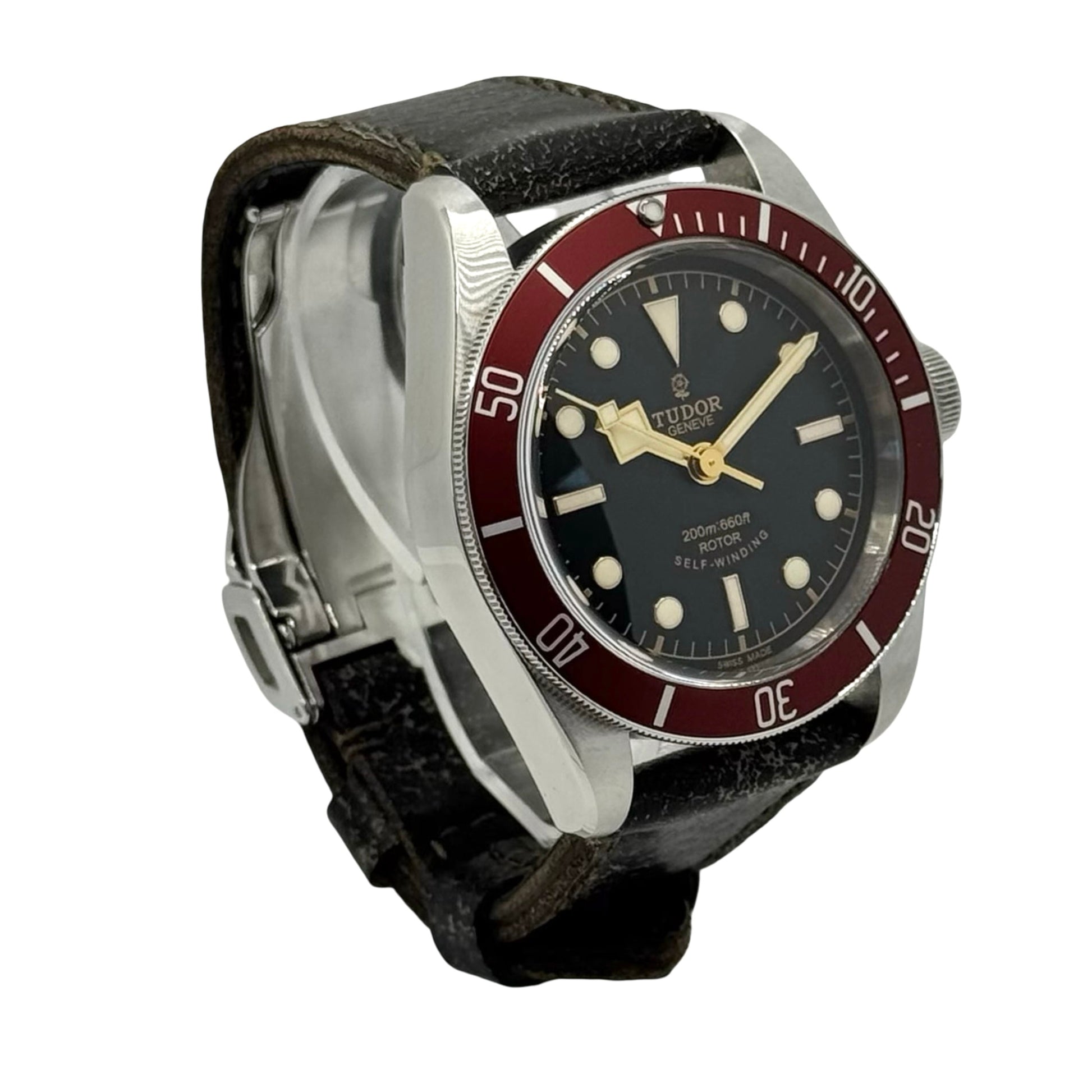 Tudor Black Bay Smiley Black Dial Red Bezel Brown Leather 79220R
