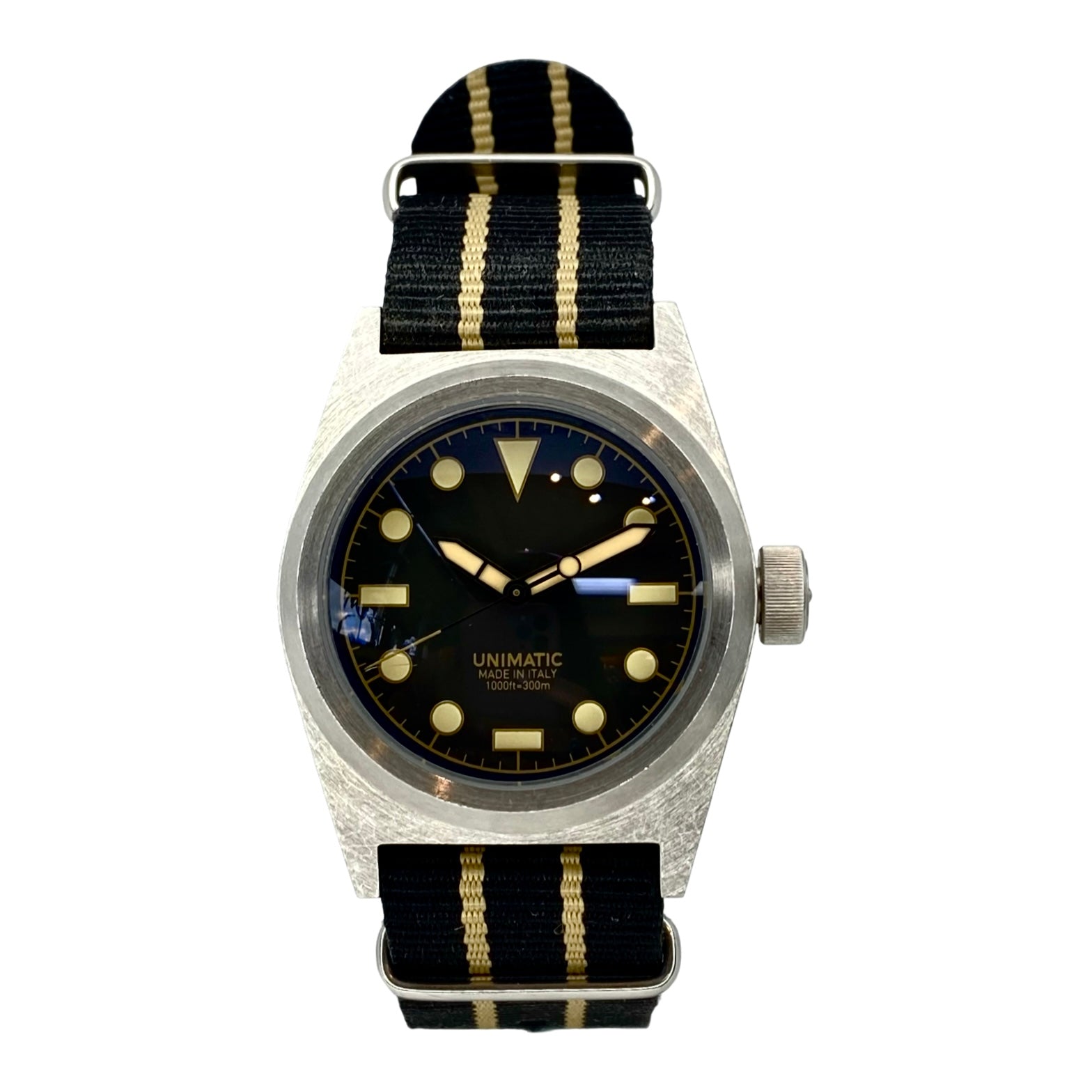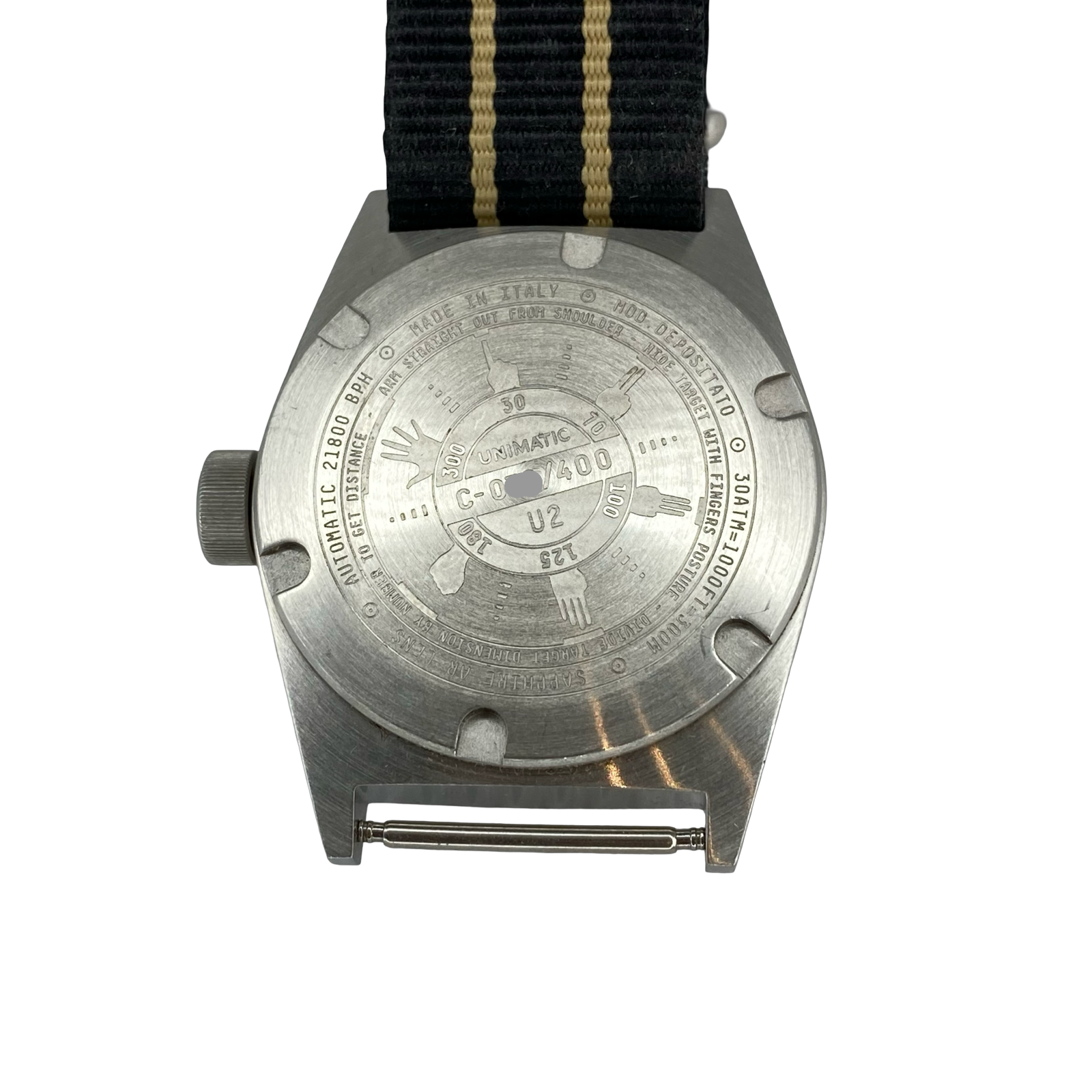 Dial numerals: None, dial print " UNIMATIC MADE IN ITALY 1000ft-300m"