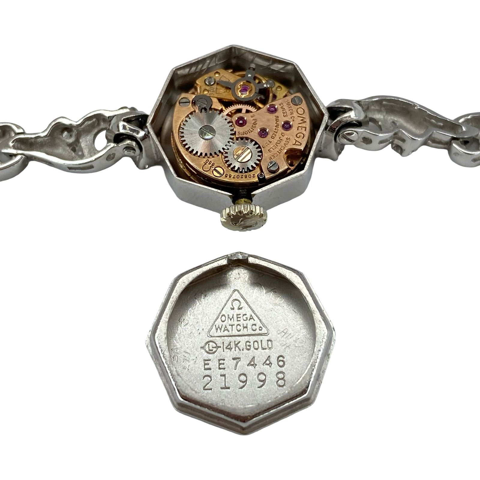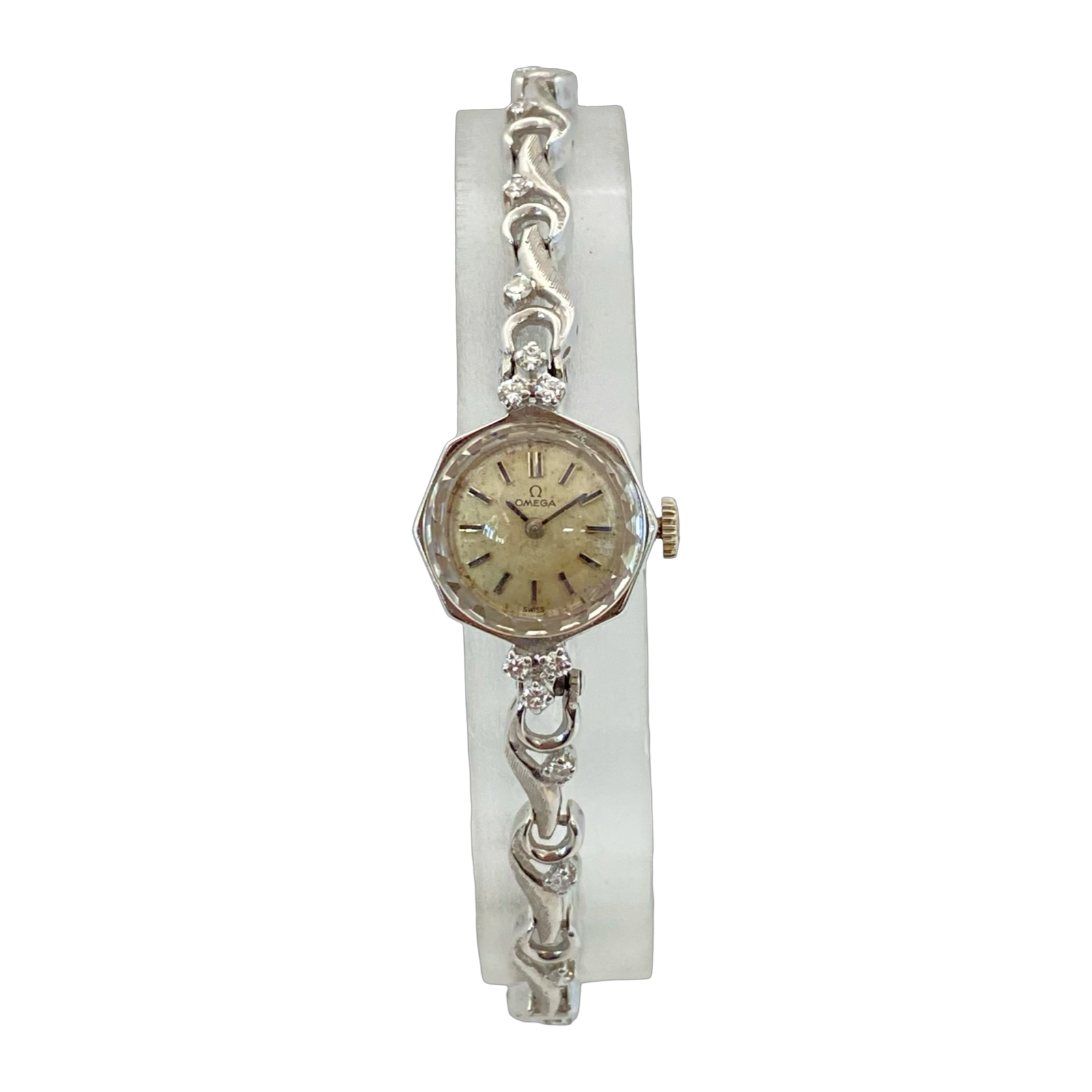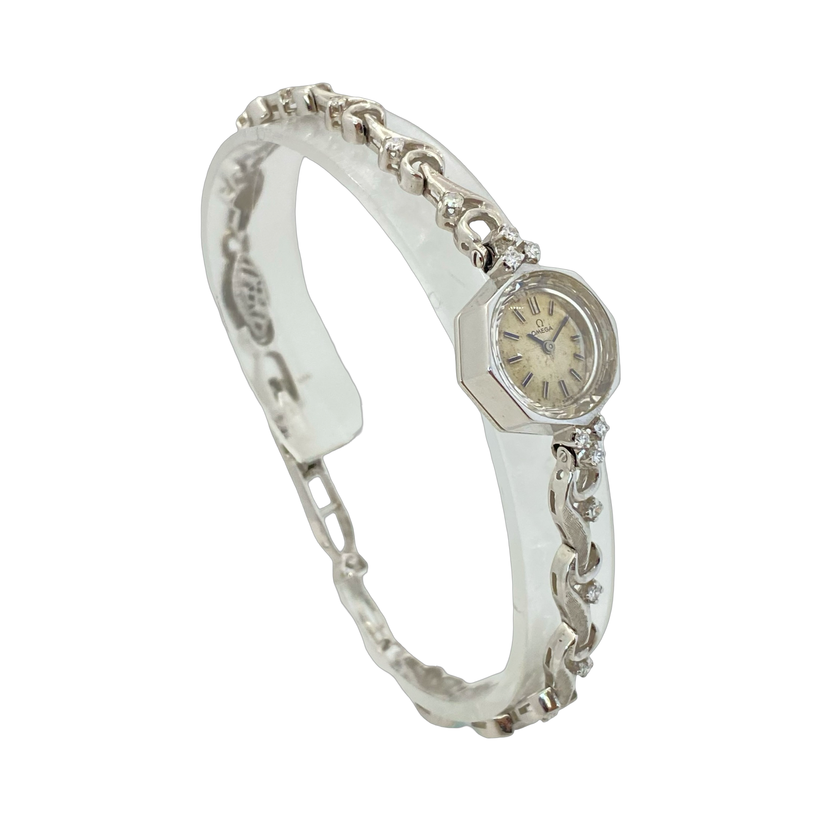 Vintage 14K White Gold Omega Cocktail Watch with Diamonds Manual Wind Ref. EE7446