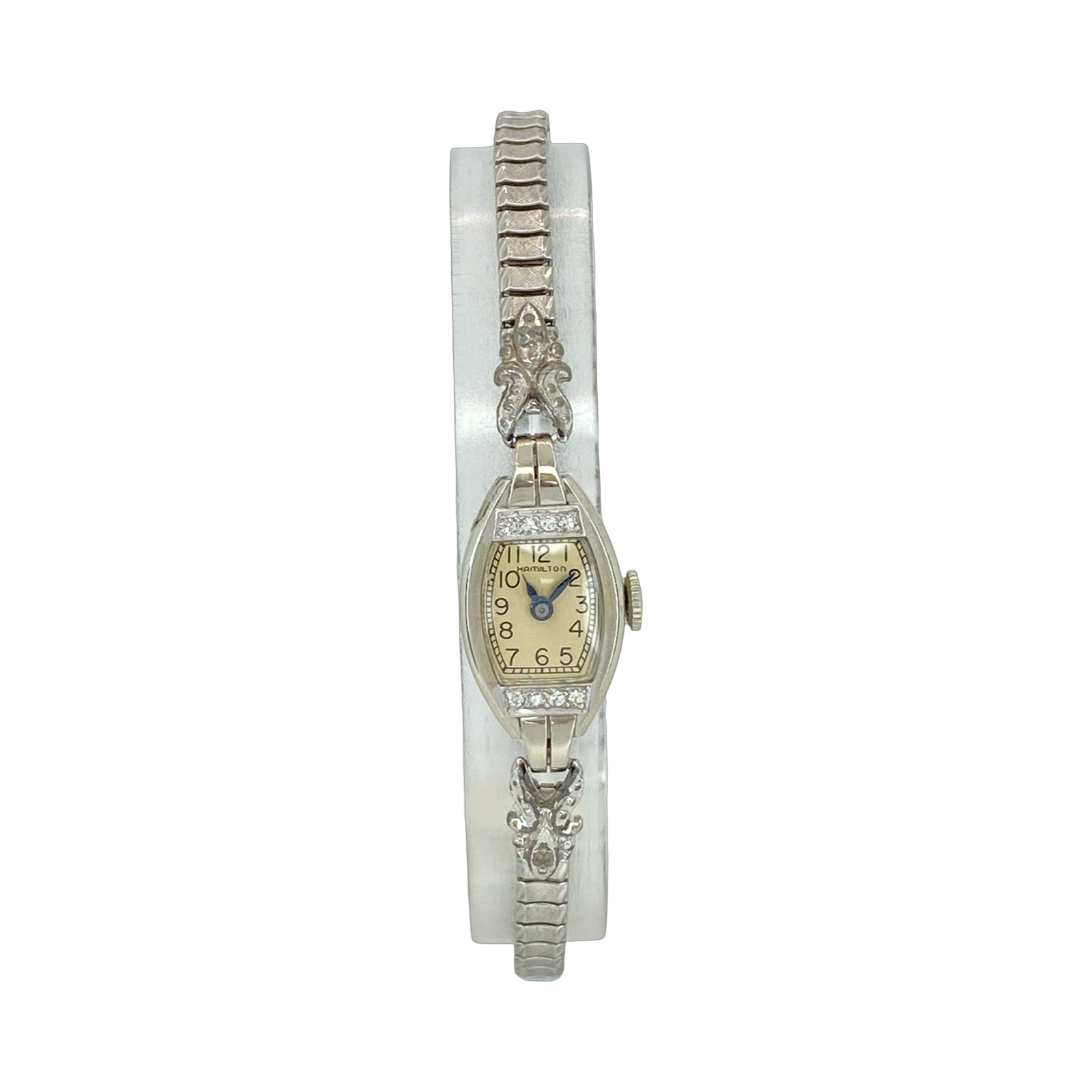 Vintage Hamilton 18K White Gold Case Cocktail Watch with Diamonds Manual Wind
