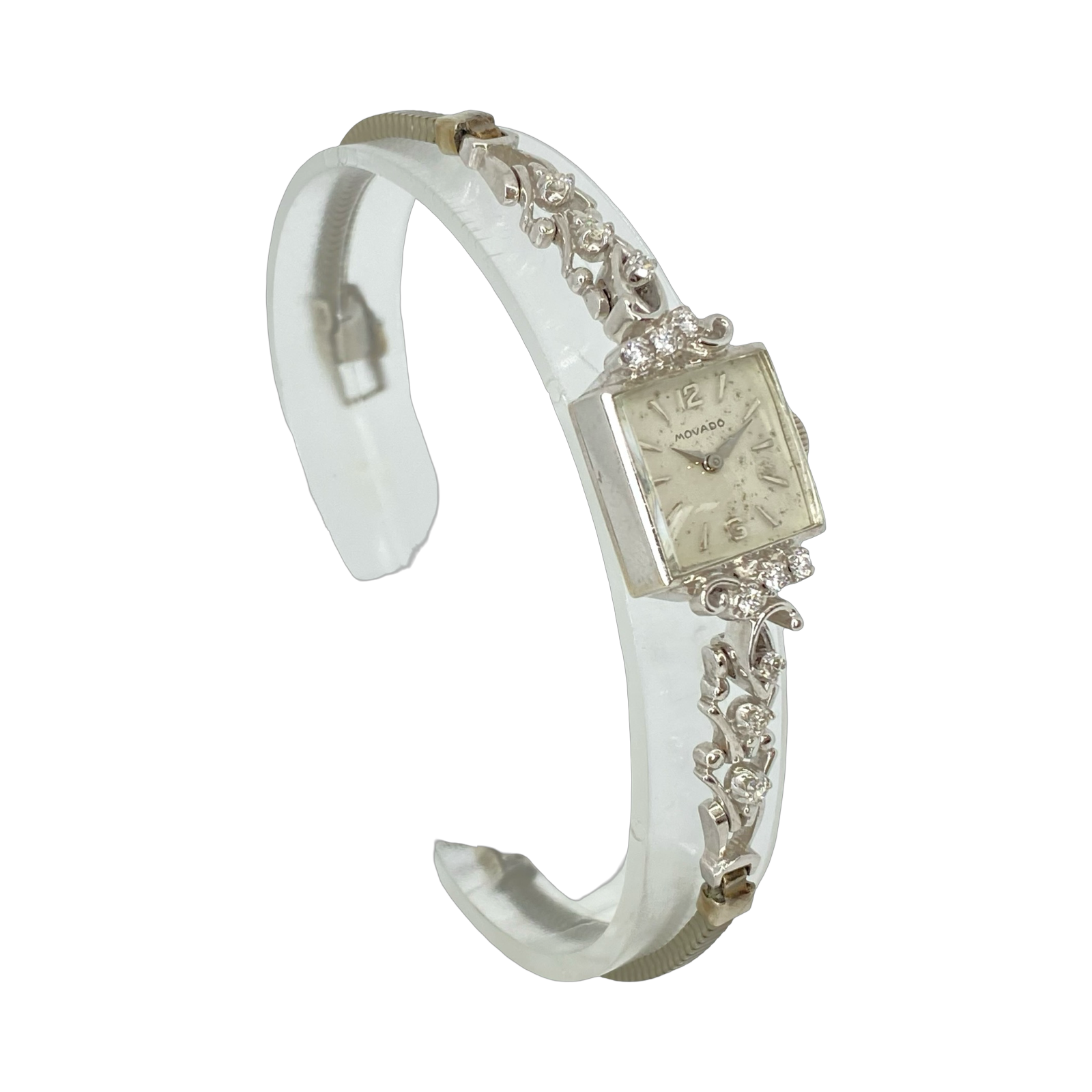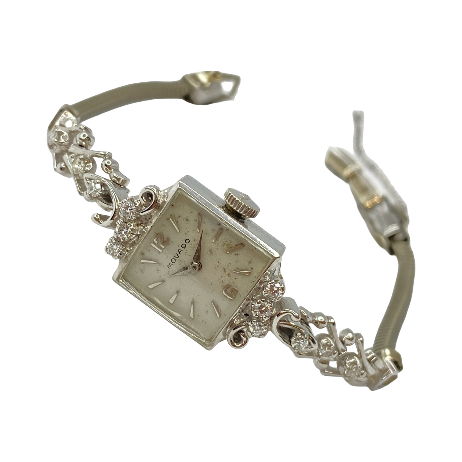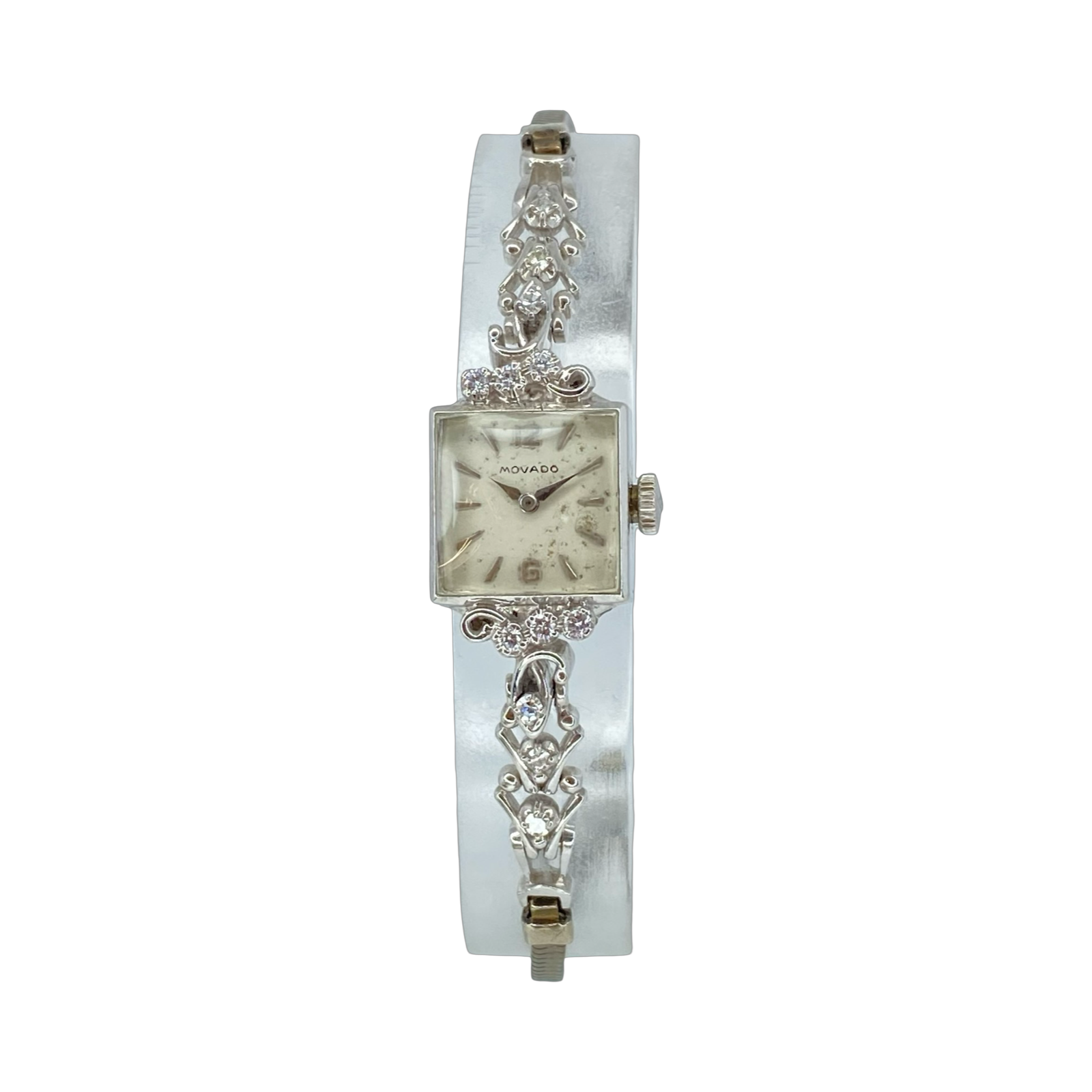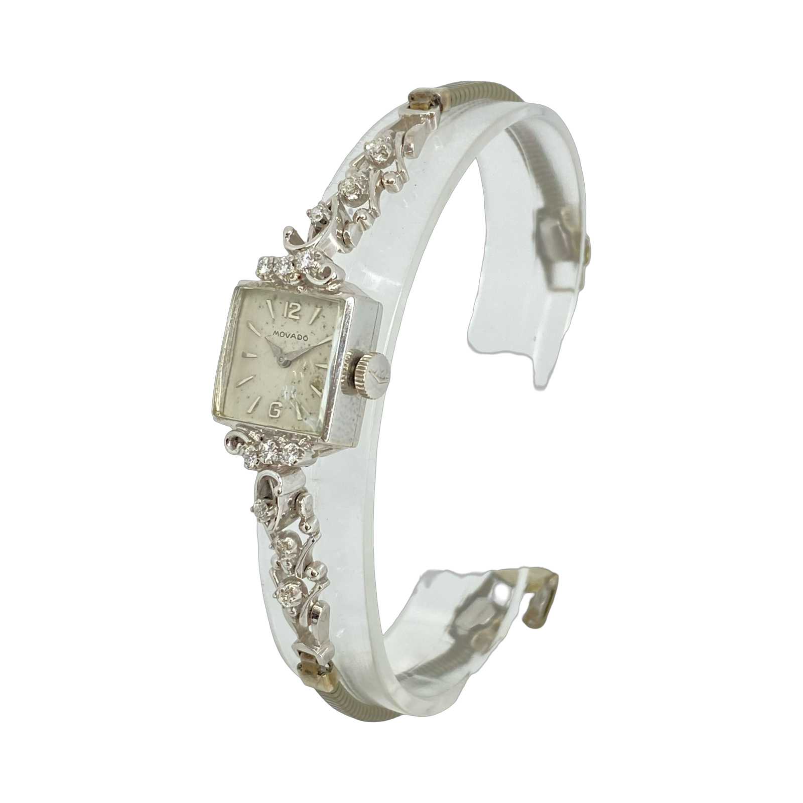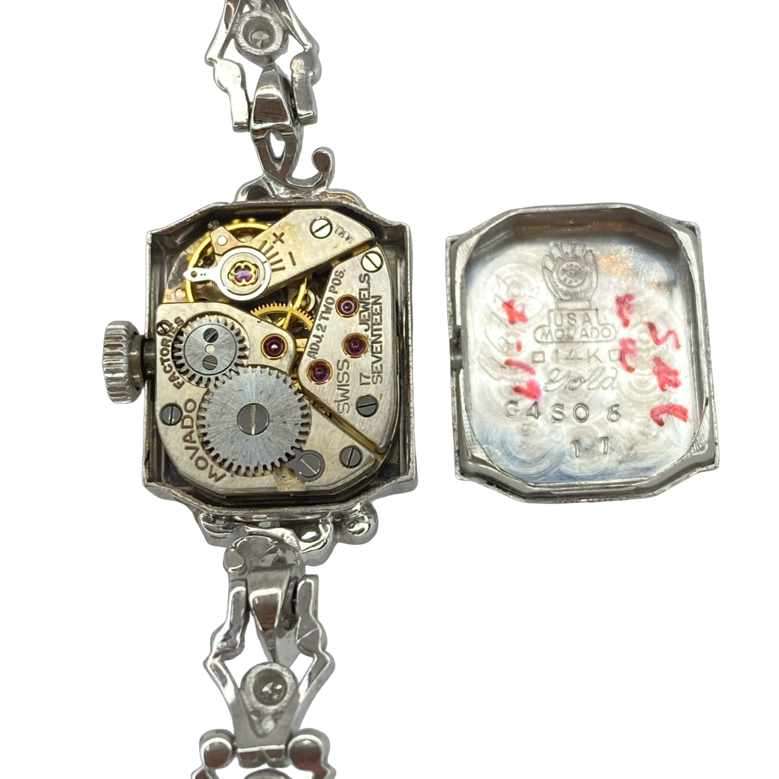 Vintage Movado 14K White Gold Cocktail Watch with Diamonds Manual Wind