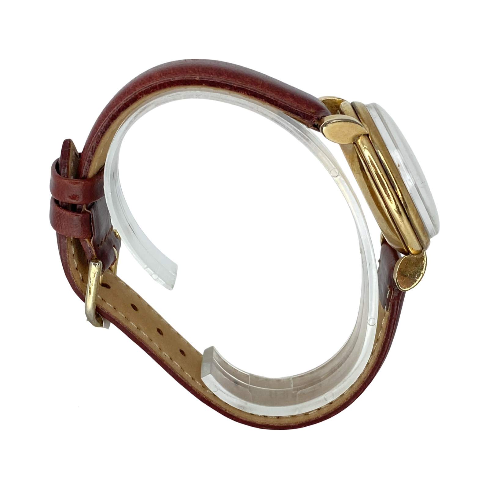 Condition: Good pre-owned condition, shows signs of wear, personal engraving on the caseback, tear drop style fancy lugs stands out. Generic leather strap
