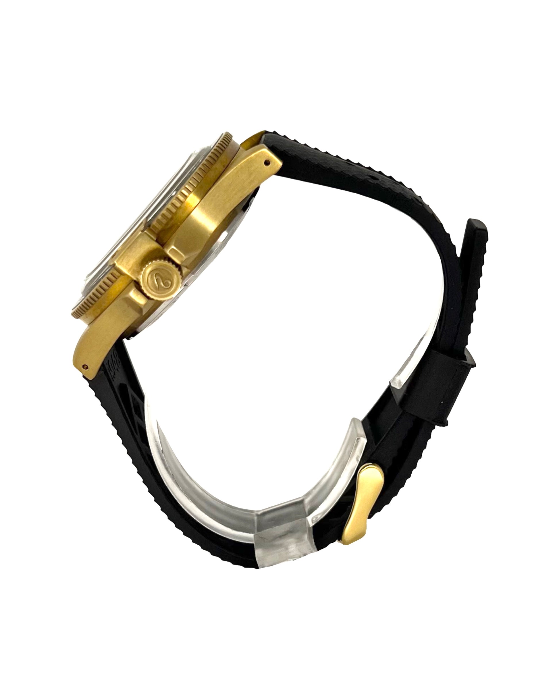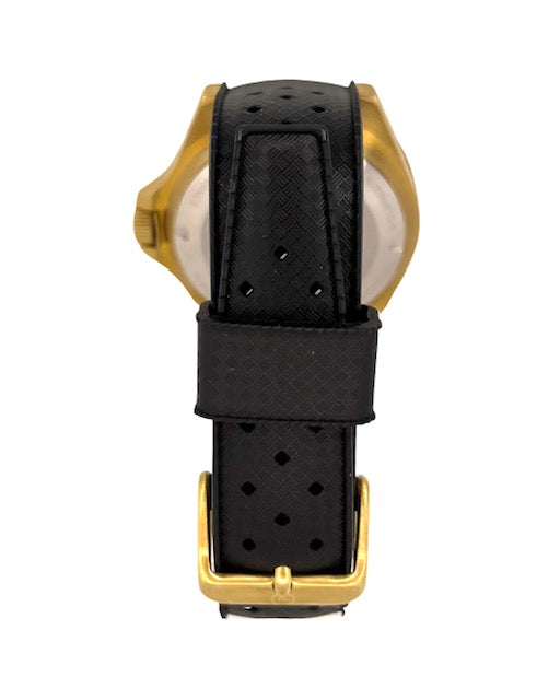Bezel: Bronze with aluminum insert, 0-24 Arabic GMT scale