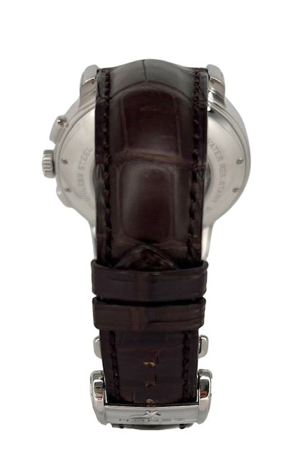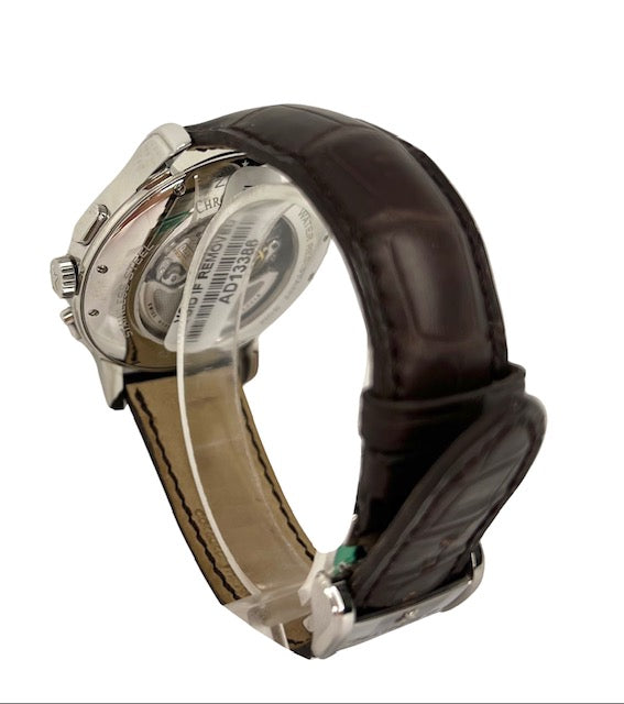 Functions: Time, Retrograde Power Reserve Indicator, Chronograph, 30-minute register sub dial